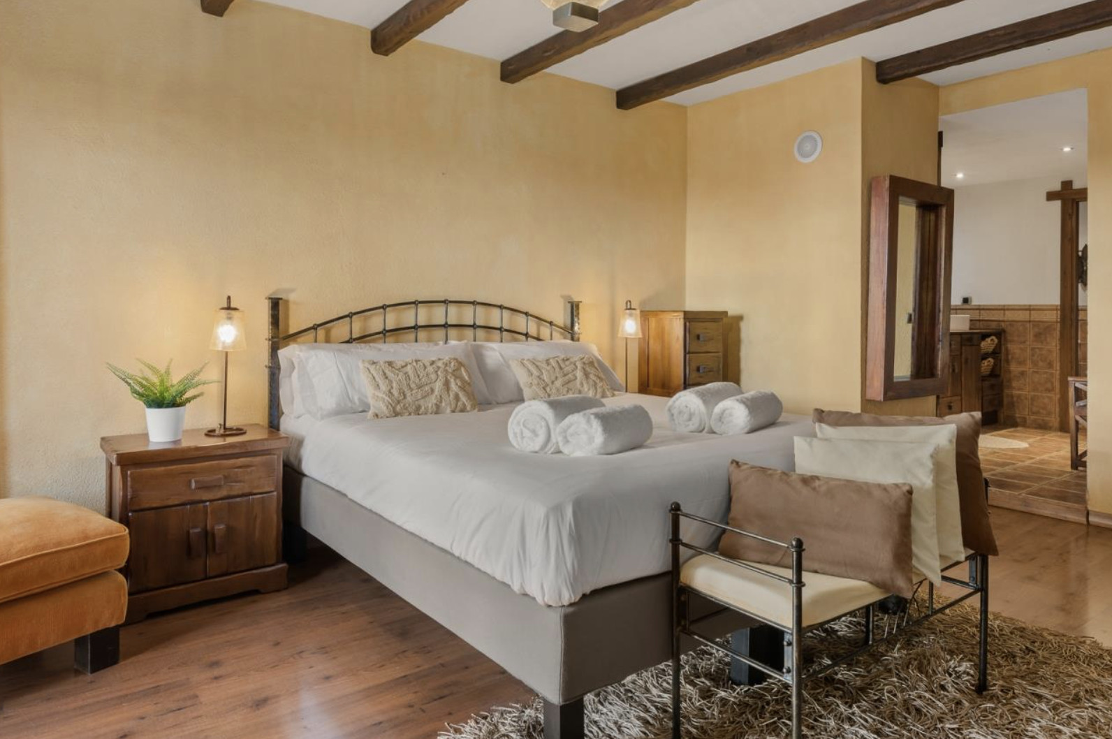 Los interiores de la villa despliegan una cuidada combinación de amplitud, calidez y carácter. Tres dormitorios dobles ofrecen el máximo confort, mientras que una suite principal —espaciosa y reservada— aporta un toque de distinción. Completan el conjunto una habitación individual y una encantadora guardilla con cama individual, ideales para momentos de introspección o lectura en silencio.