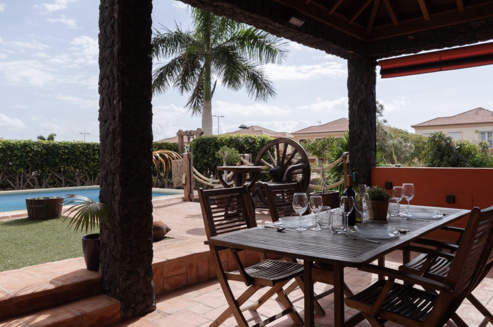 En el exterior, la villa ofrece una generosa terraza solárium con piscina climatizada, ideal para dejarse llevar por la calma del entorno. Una elegante zona de barbacoa y comedor al aire libre convierten las veladas en momentos memorables bajo el cielo canario.