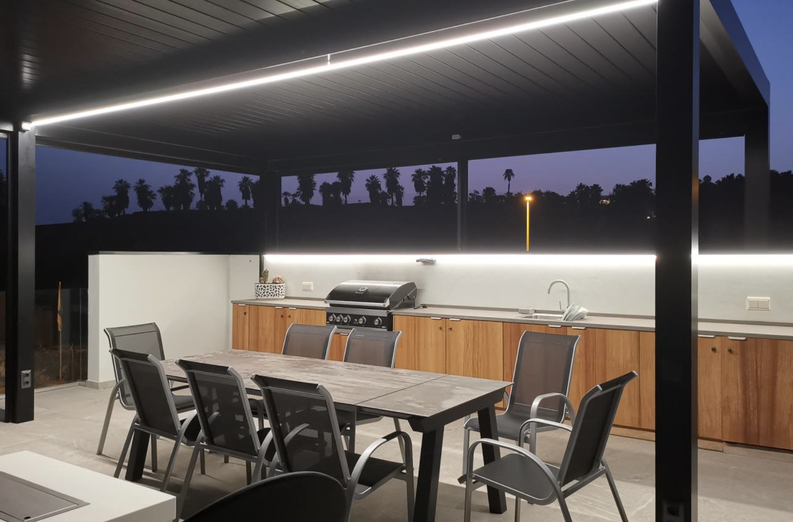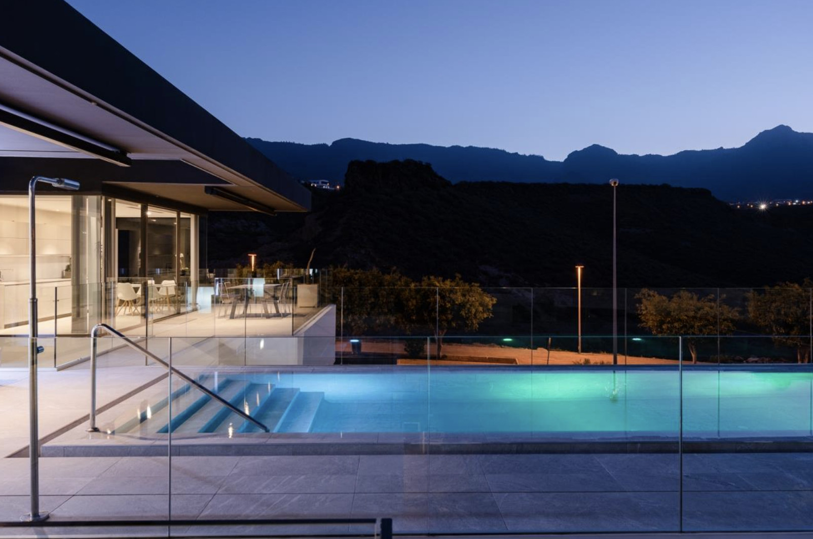 En la planta superior, la cocina —moderna, amplia y totalmente equipada— se abre hacia una zona de comedor ideal para compartir momentos inolvidables. La transición hacia la gran terraza exterior es natural y envolvente, donde el sonido del agua en la piscina climatizada invita al relax absoluto. La zona chill out, el jacuzzi al aire libre y la barbacoa completan una experiencia sensorial concebida para el deleite.