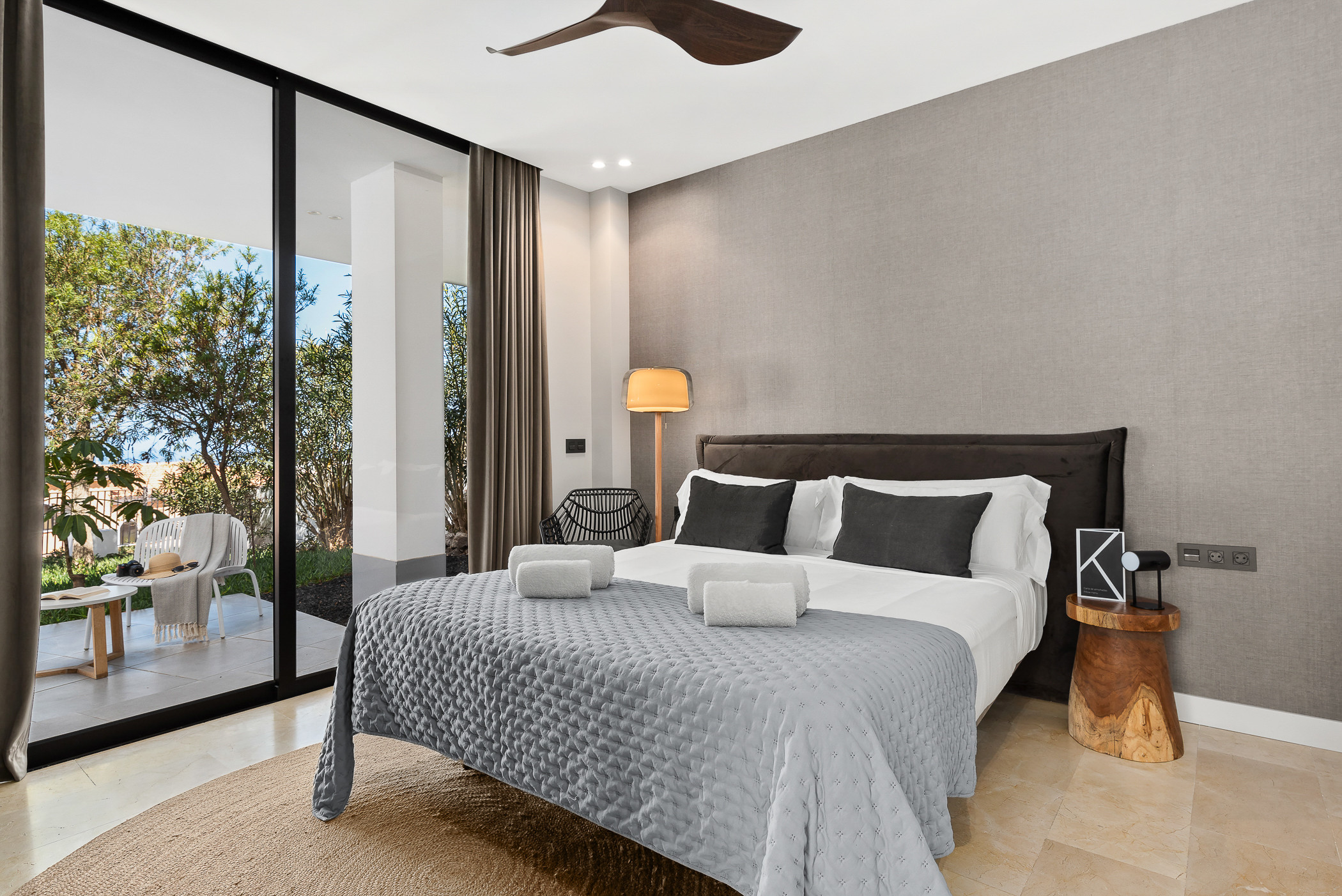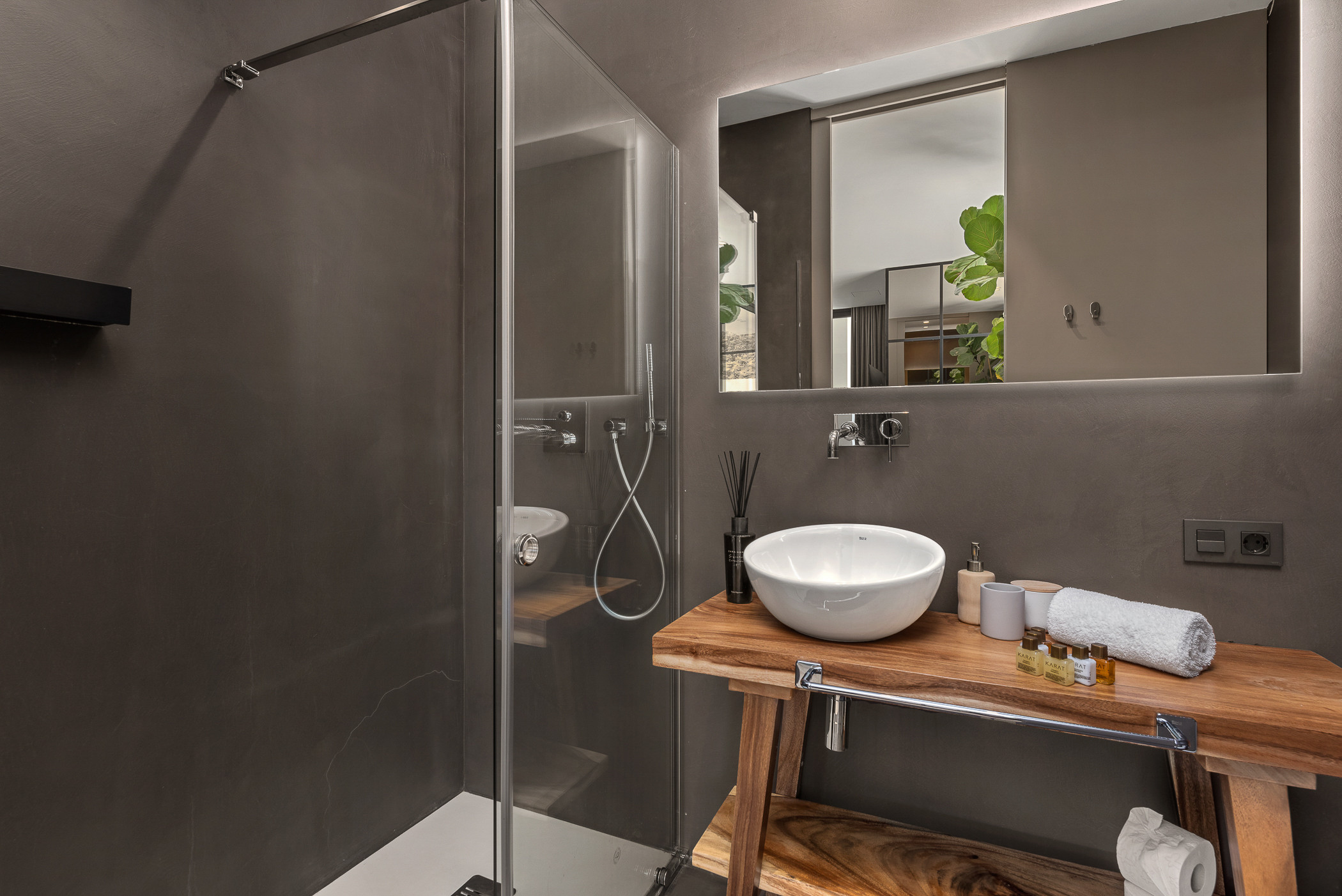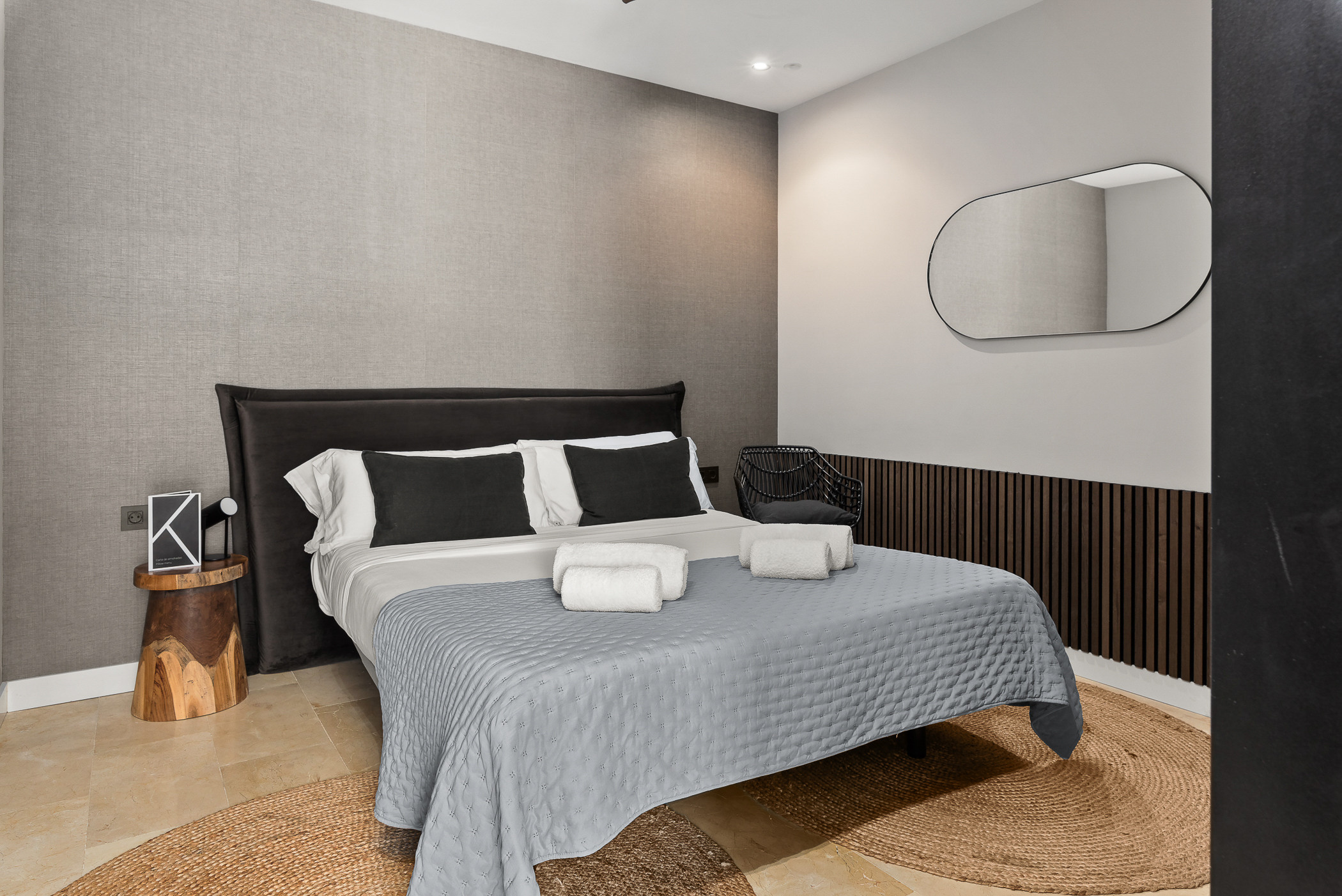 En la planta baja, dos amplias suites con baño privado se abren a una terraza con vistas panorámicas al océano. La piscina climatizada invita a la relajación, mientras que un exclusivo chill out en el interior de una cueva natural crea un ambiente mágico y sereno.