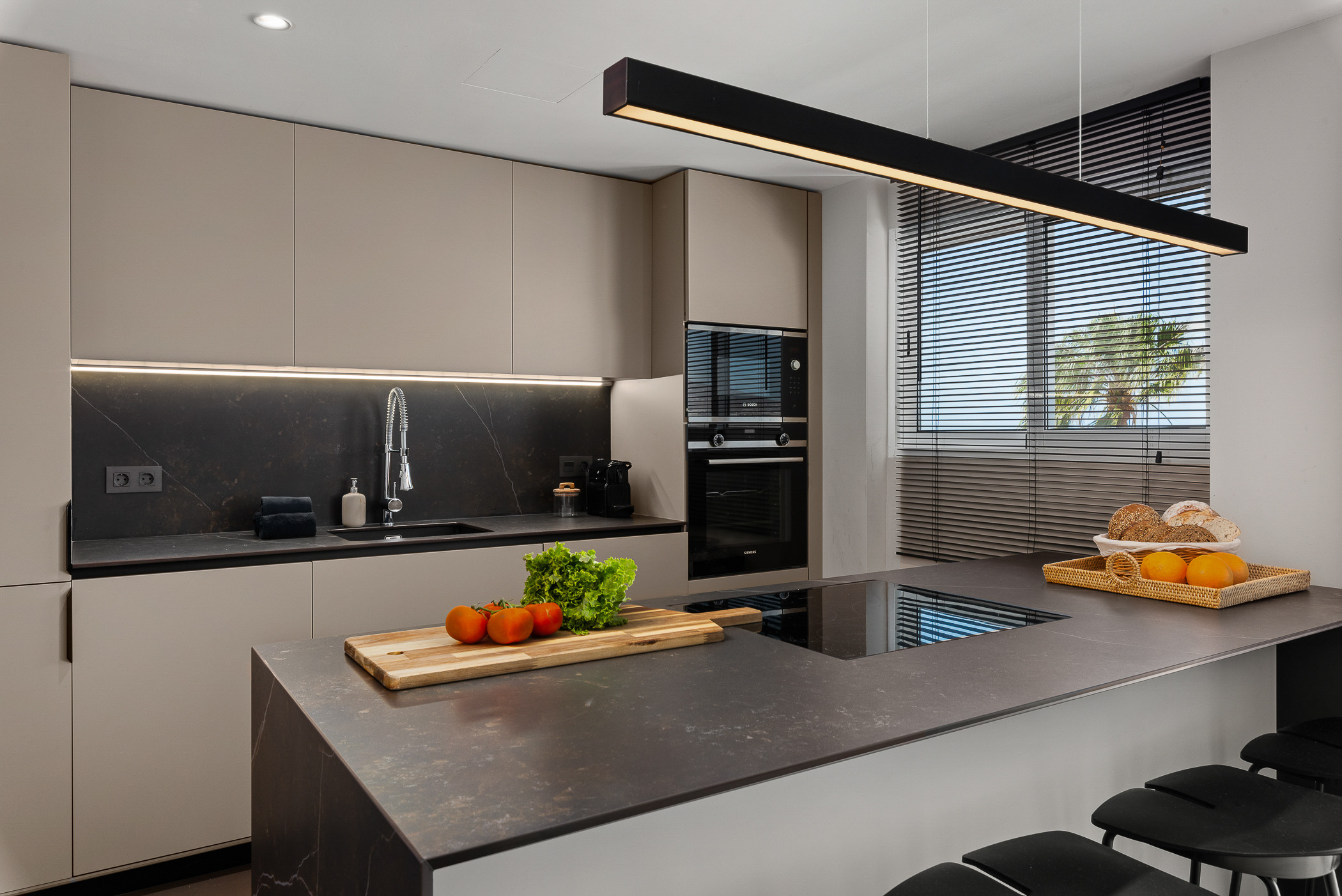 La planta superior alberga un espacioso salón con cocina integrada, pensado para compartir grandes momentos. Desde aquí, se accede a una espectacular terraza con vistas abiertas, perfecta para disfrutar de cenas al aire libre y puestas de sol memorables.
