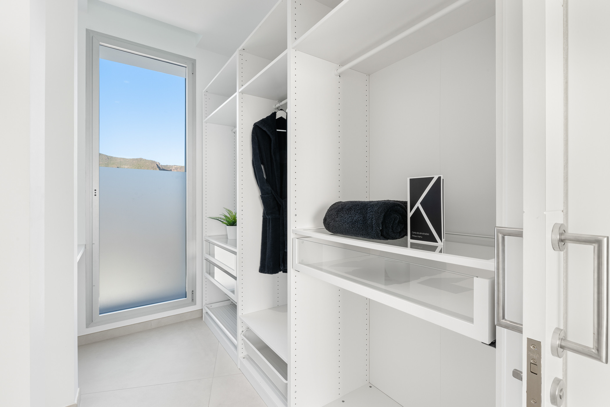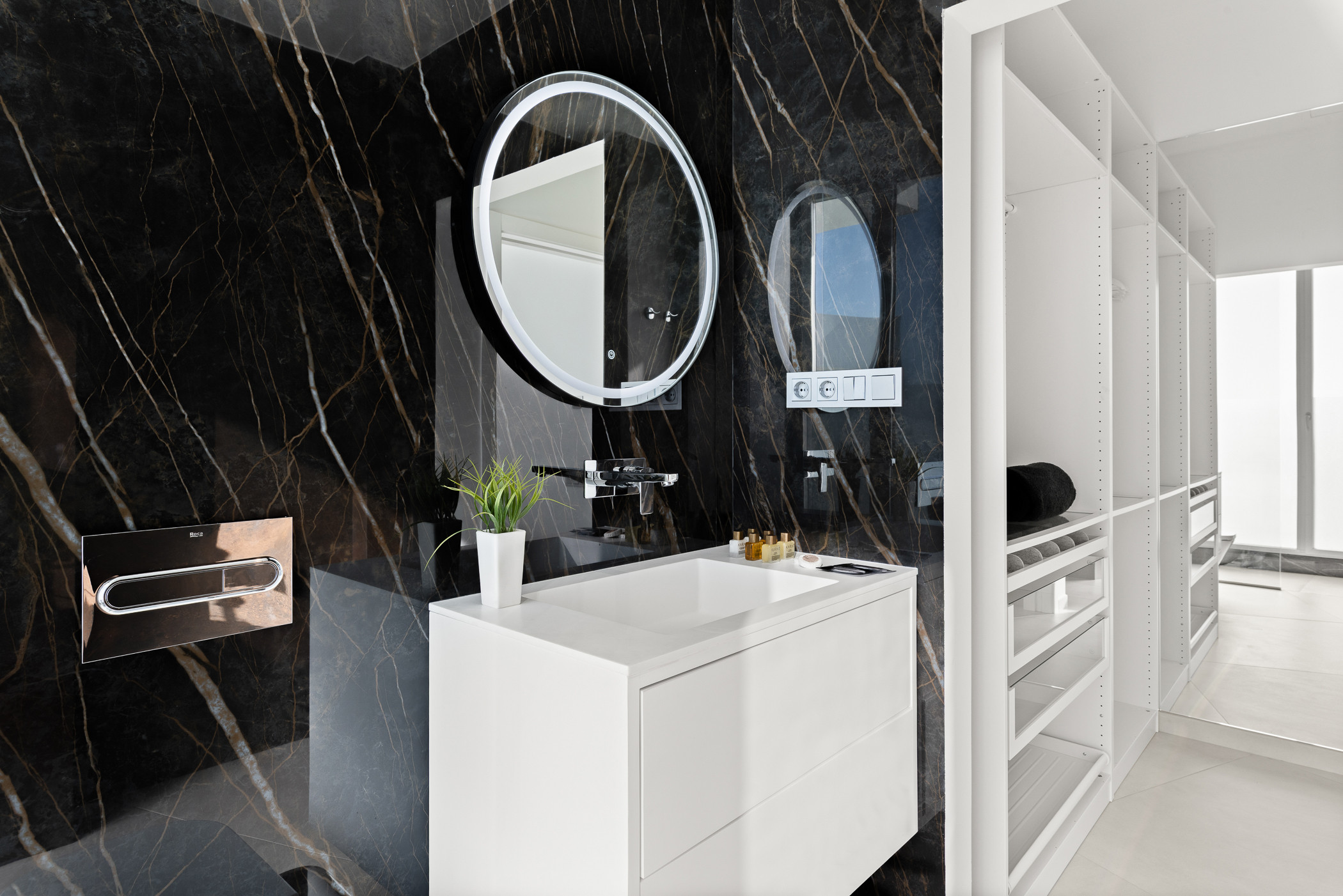 El piso superior alberga el dormitorio principal. Cuenta con un baño en suite completo con bañera, ducha y una ducha al aire libre, todo ello con vistas impresionantes. La villa también ofrece tres habitaciones dobles adicionales, cada una con su propio baño privado, asegurando que todos los huéspedes disfruten de la máxima comodidad y privacidad.