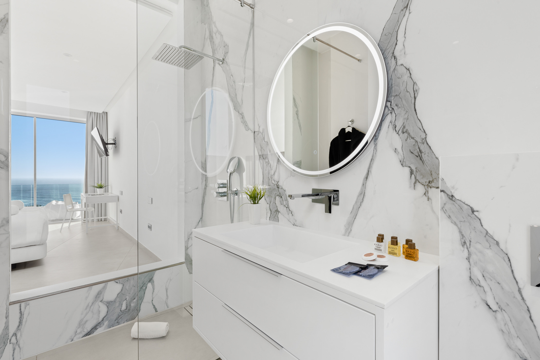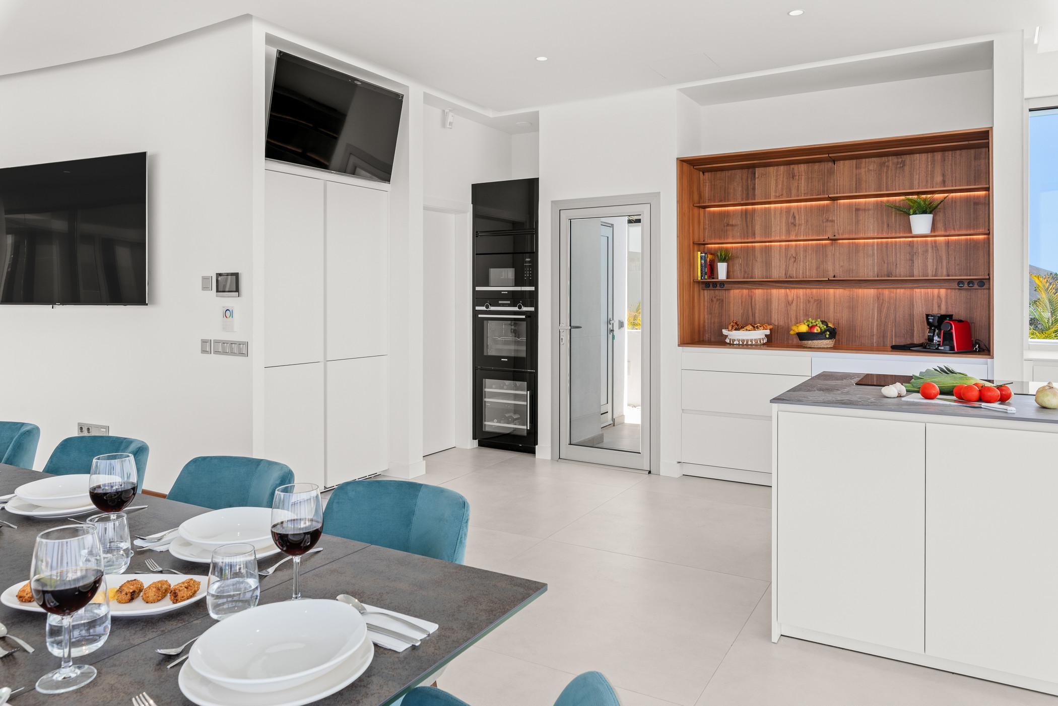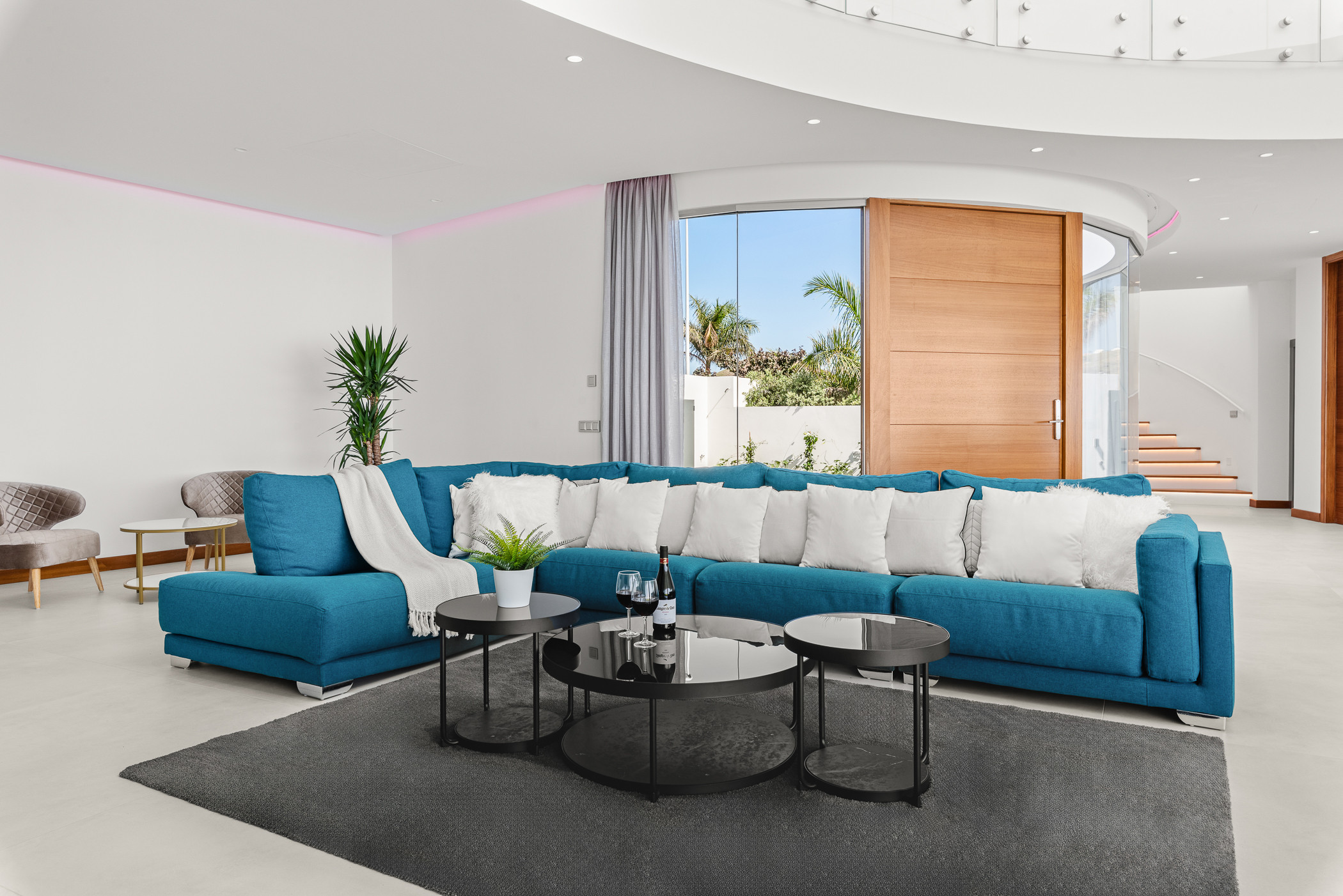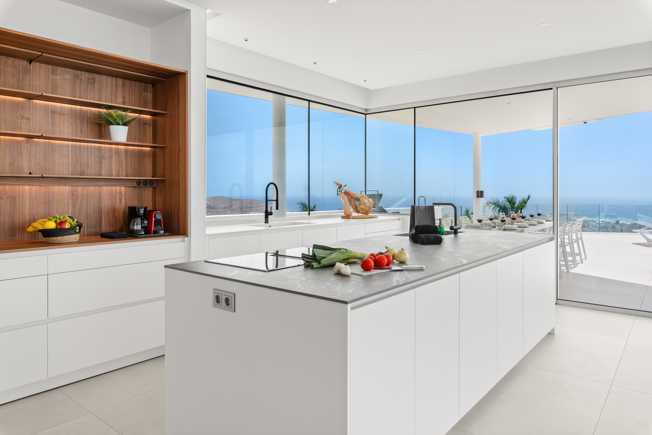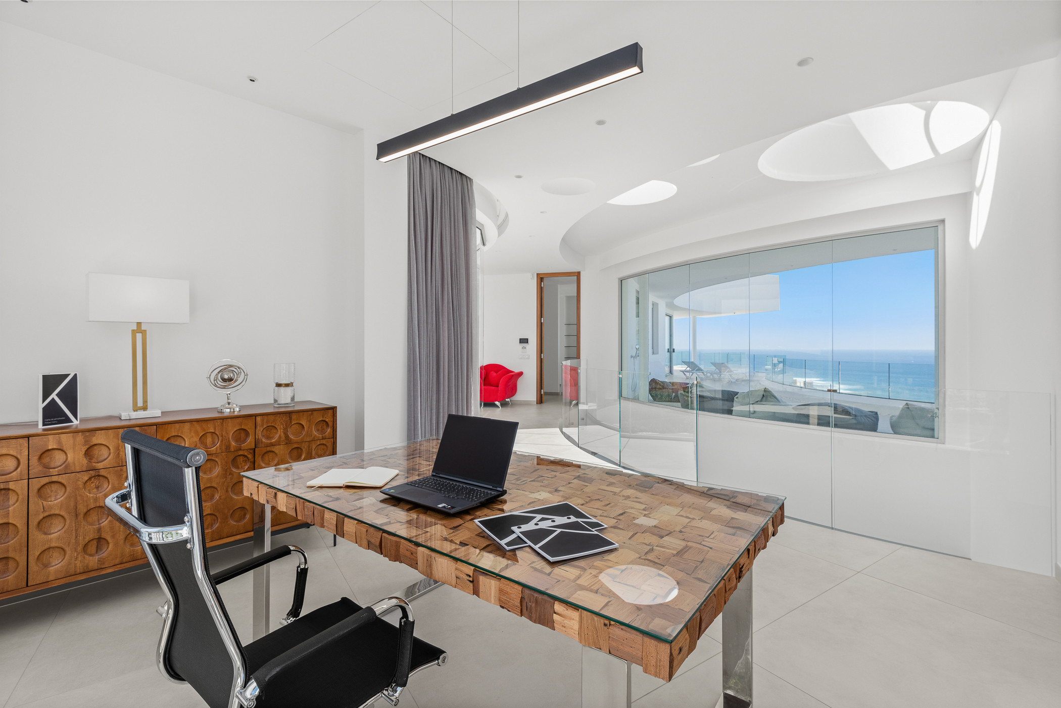 Al ingresar por la entrada principal tendrás acceso a la cocina moderna, el área de comedor y la amplia sala de estar. Estos espacios de concepto abierto se fusionan perfectamente y ofrecen vistas panorámicas al mar.