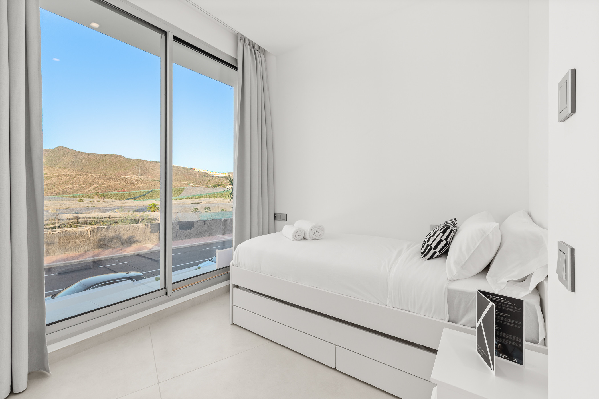 Ubicada en una ubicación privilegiada, la villa ofrece impresionantes vistas a la isla de La Gomera y la costa sur de Tenerife. Además, la villa está a solo 5 minutos en coche de la playa de Las Américas.