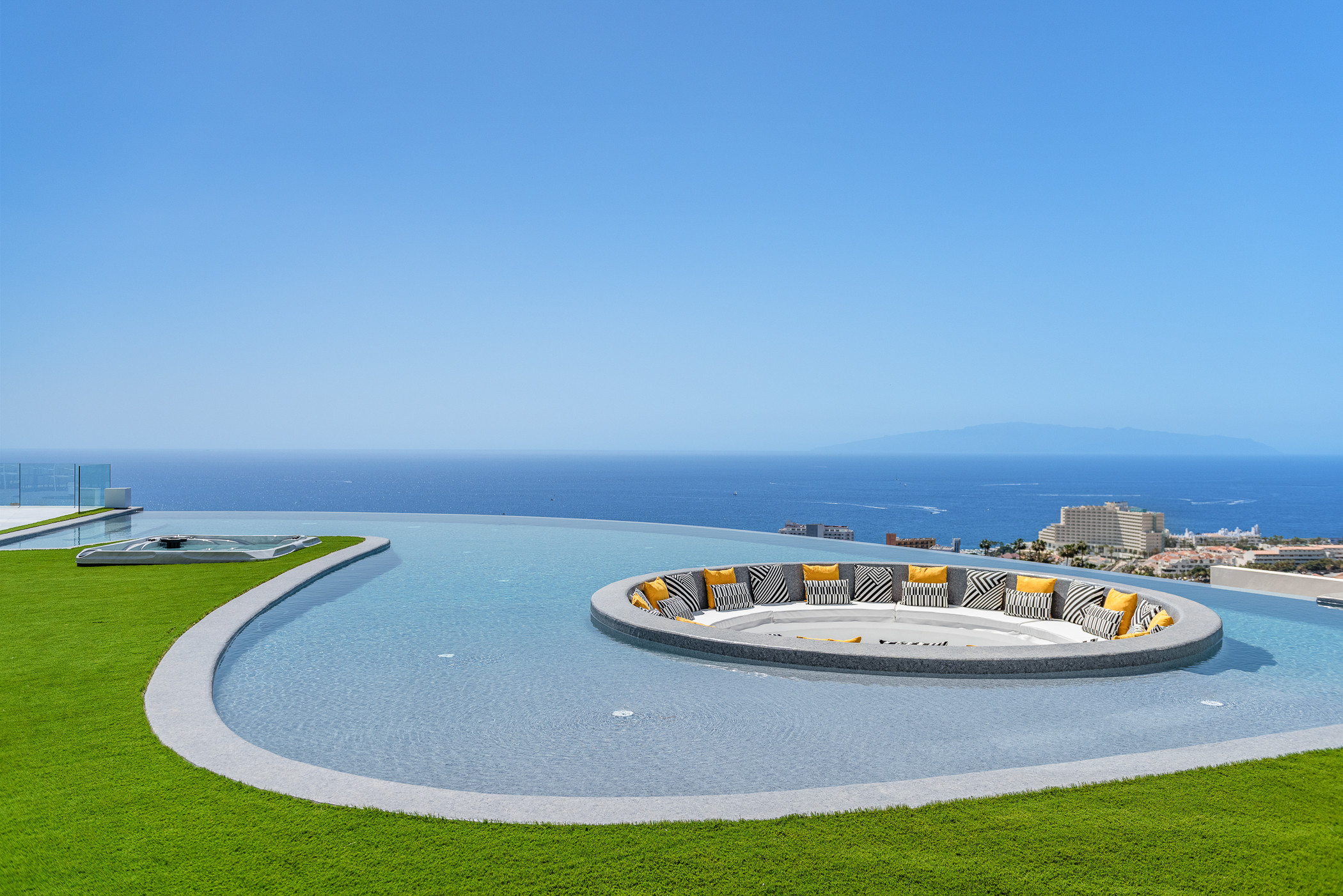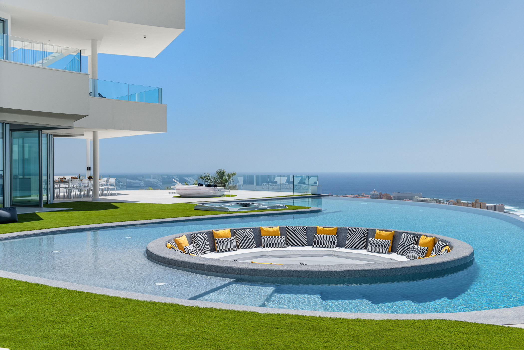 Lo más destacado de la villa es sin duda el impresionante jacuzzi ubicado en el piso superior y su piscina infinita.