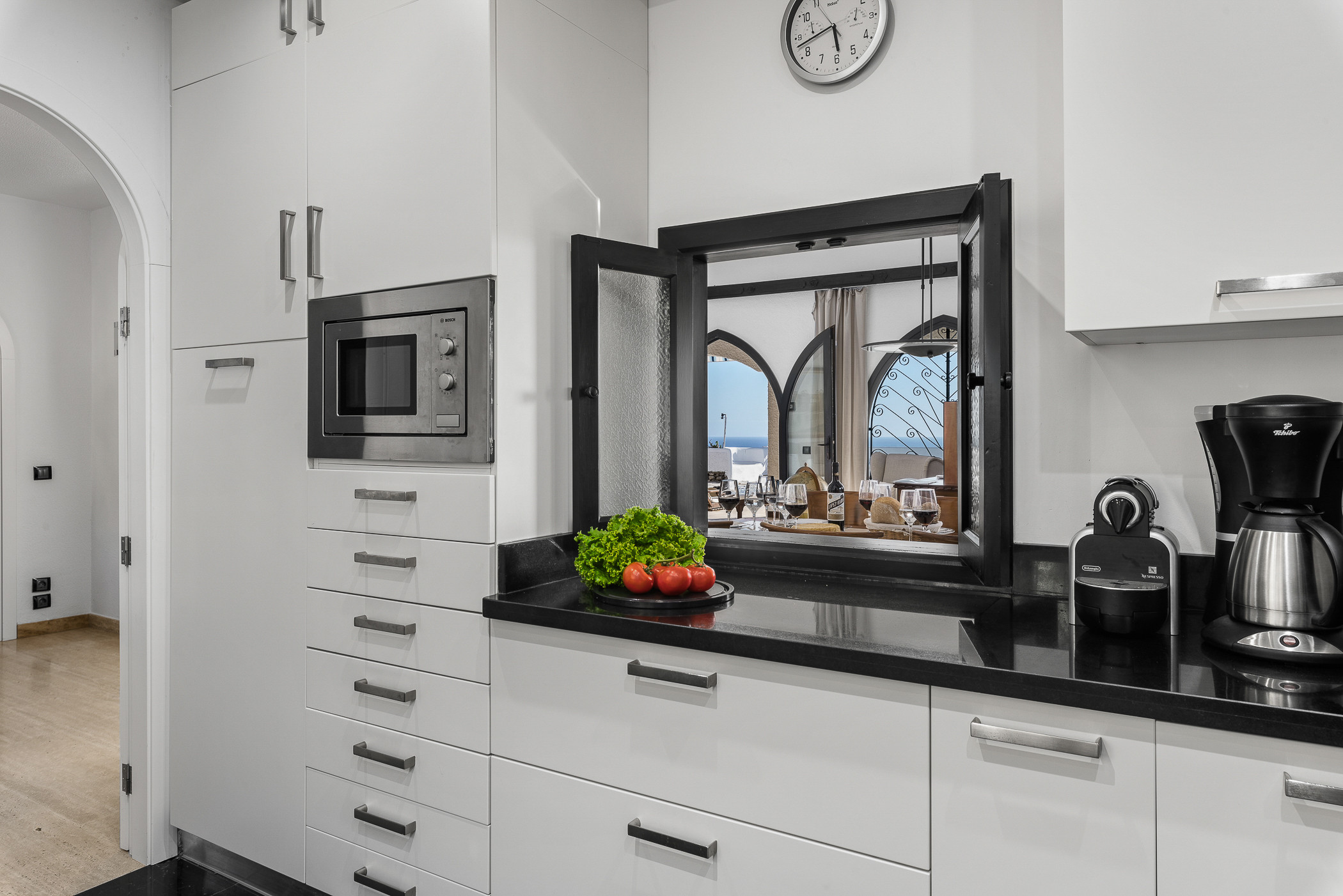 En el exterior, el verdadero encanto se despliega: una piscina con jacuzzi orientada hacia el mar ofrece un rincón incomparable para relajarte mientras contemplas el horizonte. La zona chill out es ideal para desconectar con una copa en mano, rodeado de un ambiente cálido y exclusivo.