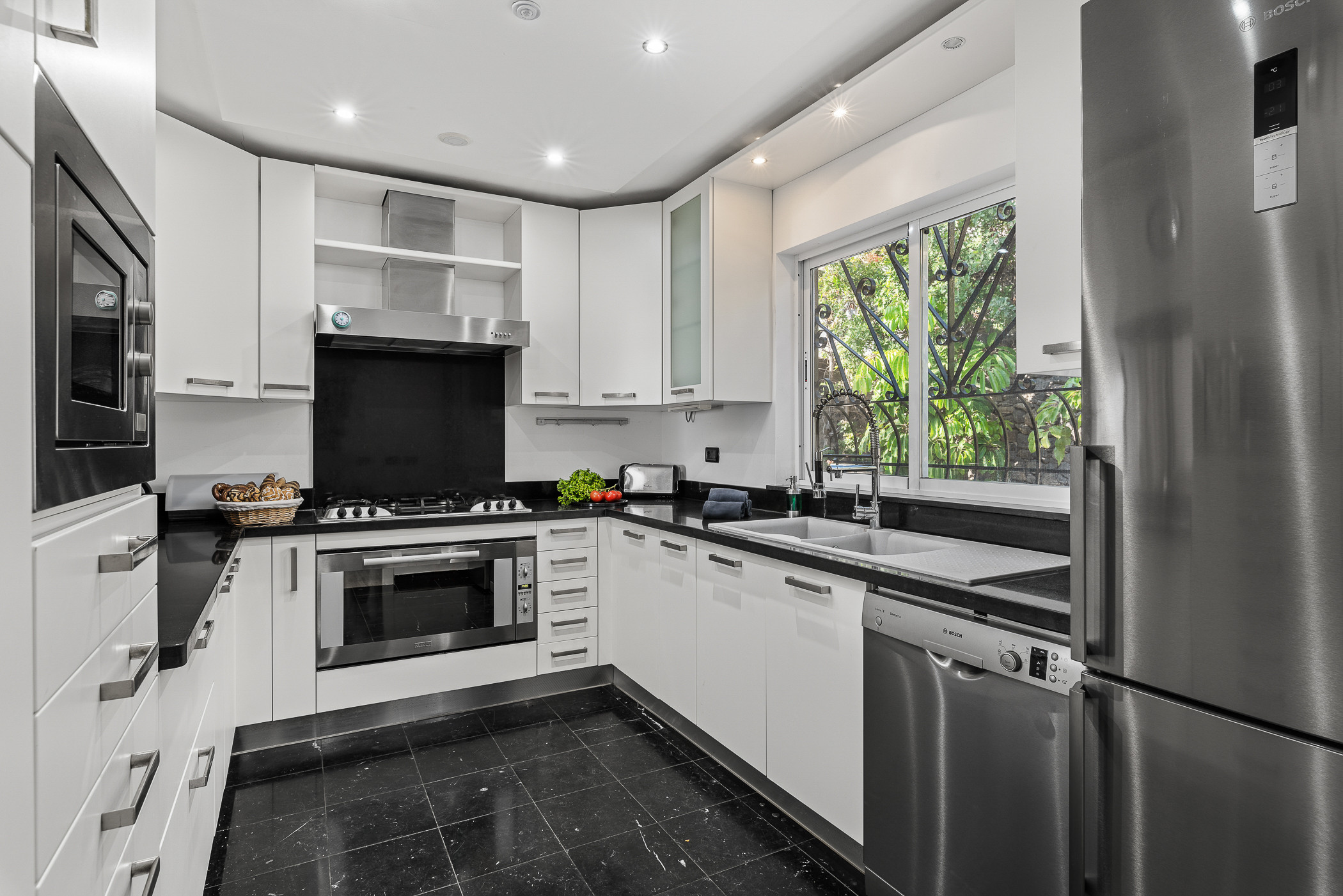 El corazón de la villa es su amplio salón-comedor con techos de doble altura, un espacio inundado de luz natural que invita al descanso y al disfrute. La cocina, completamente equipada, te brinda todo lo necesario para experimentar la cocina local con libertad y estilo.