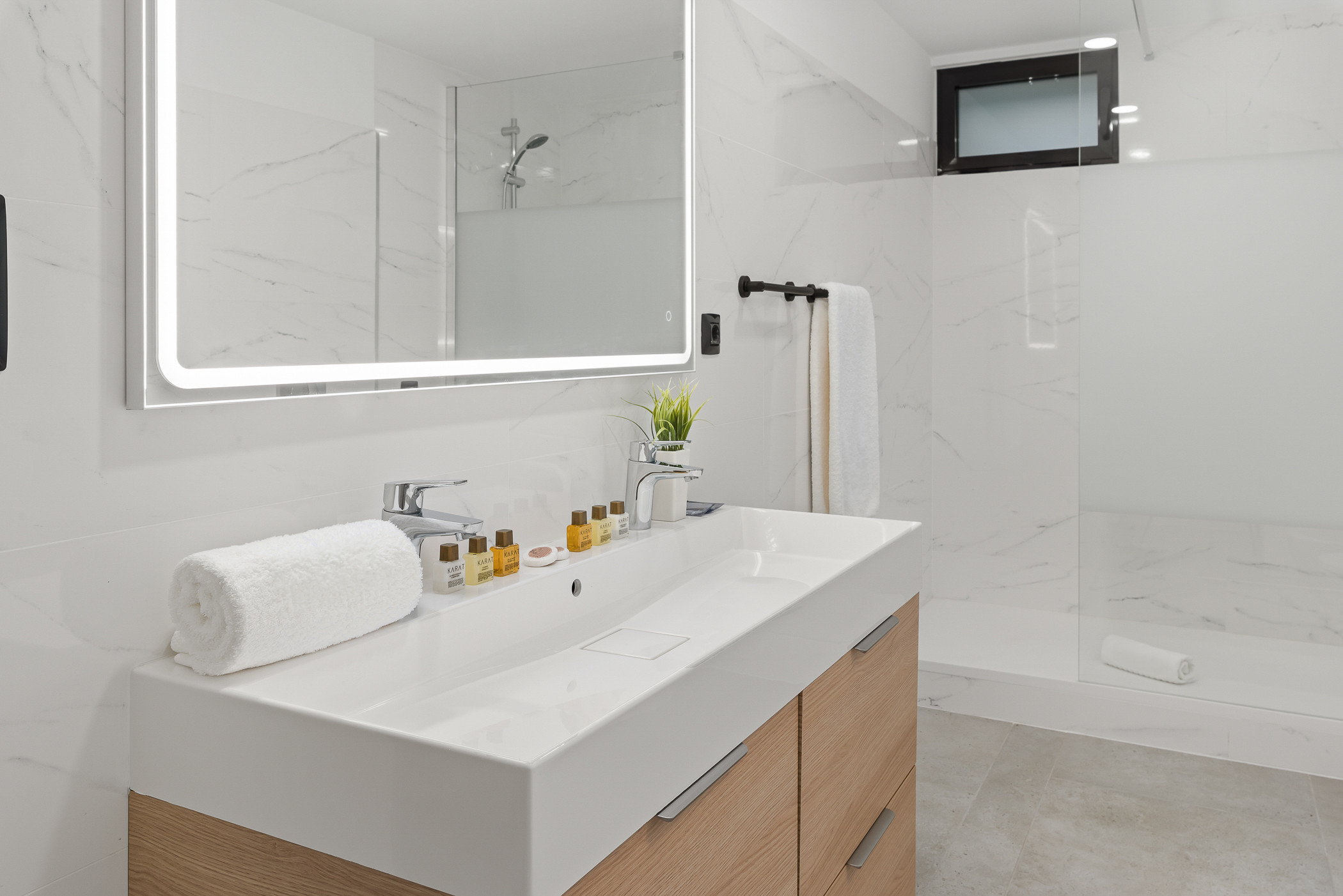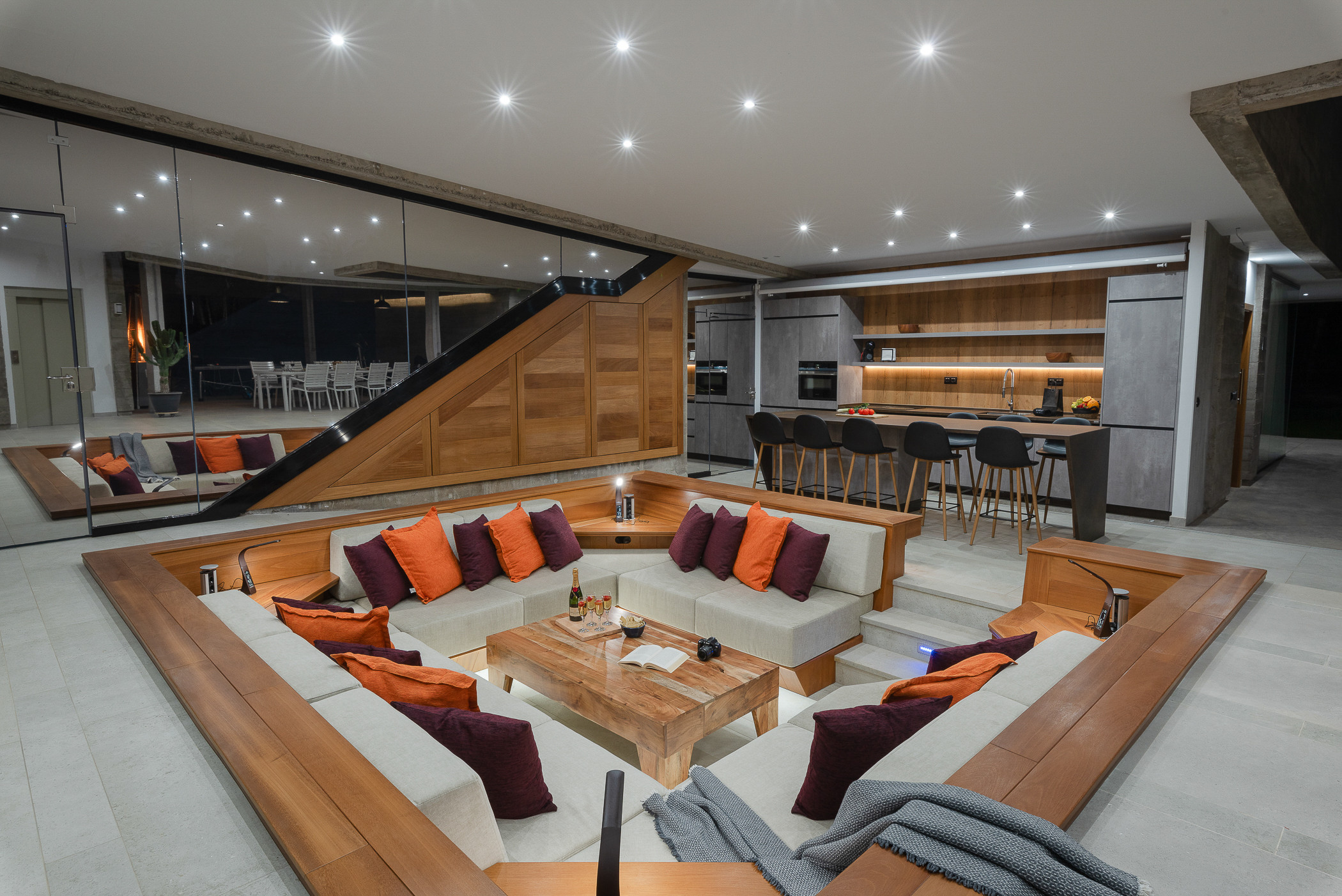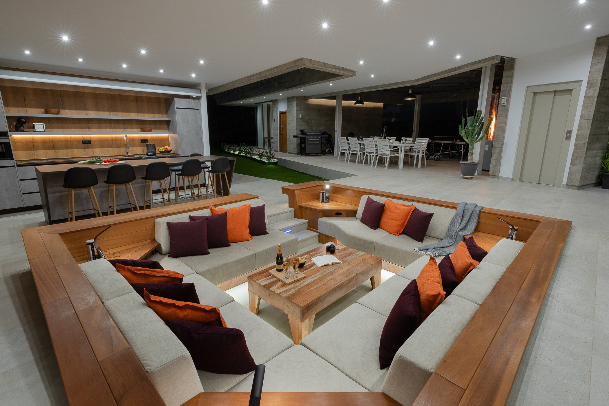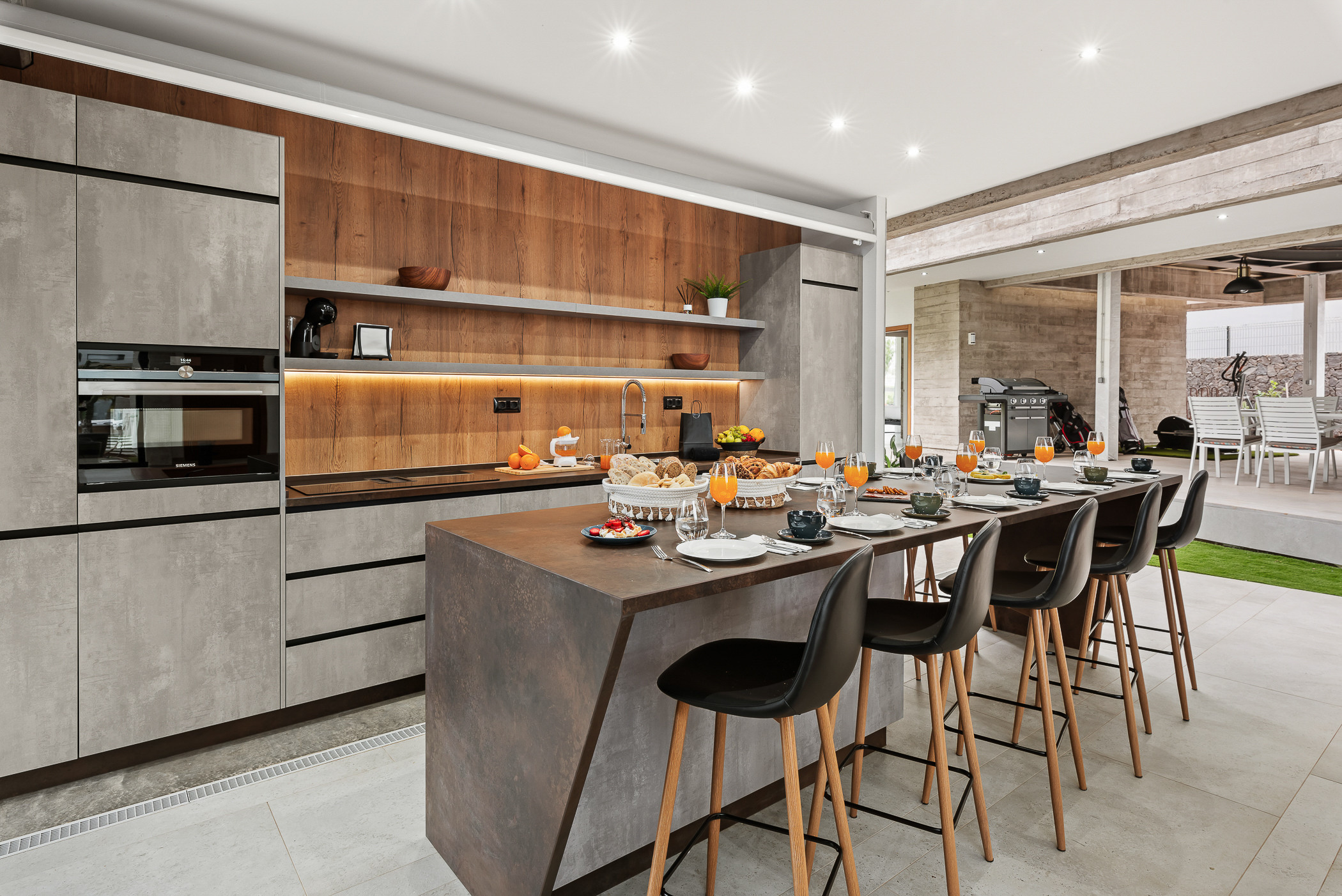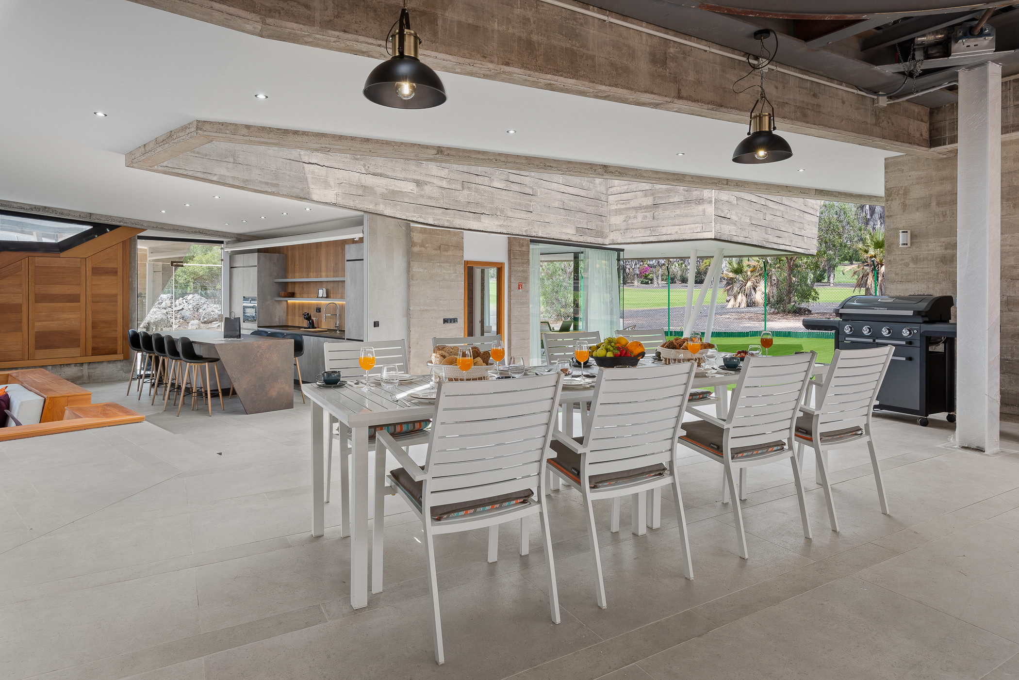 La cocina de concepto abierto es amplia y luminosa, y está completamente equipada con todo lo necesario para preparar tus comidas favoritas. Una mesa de comedor tanto exterior como interior te permitirá disfrutar de comidas al aire libre con vistas impresionantes.
