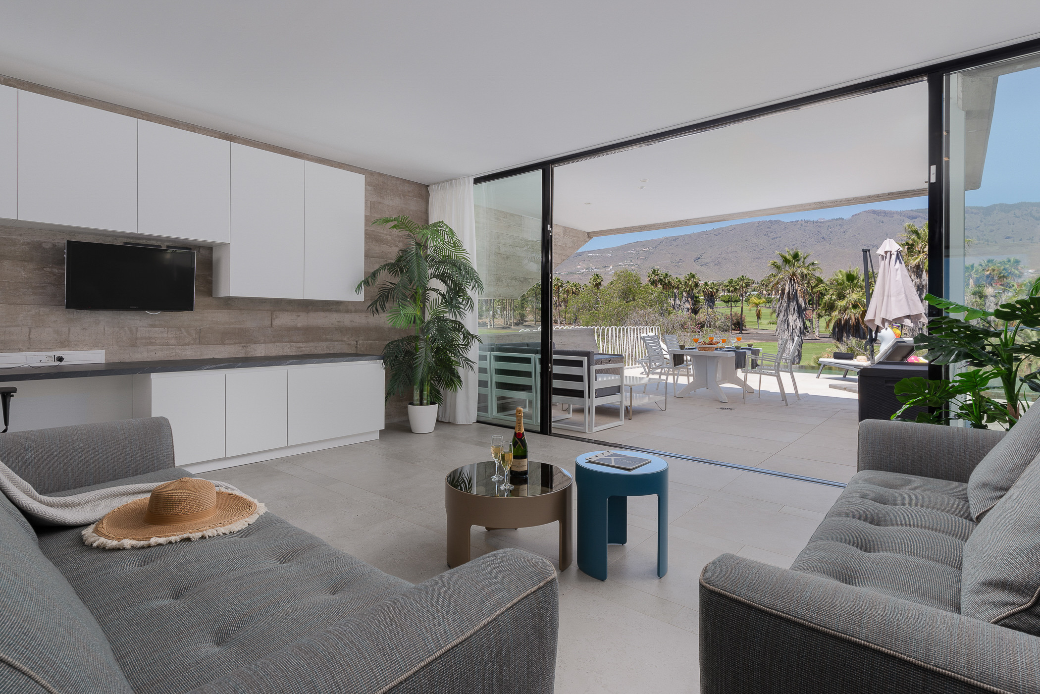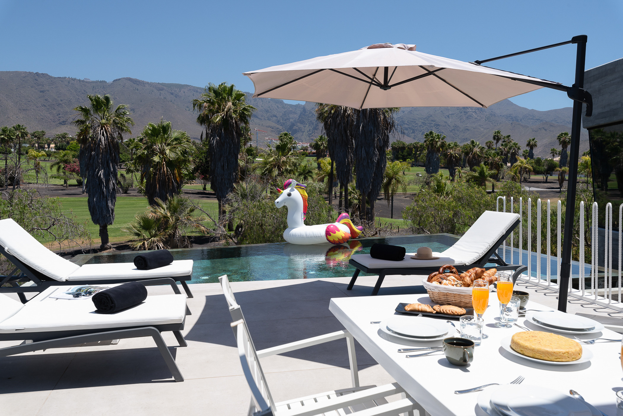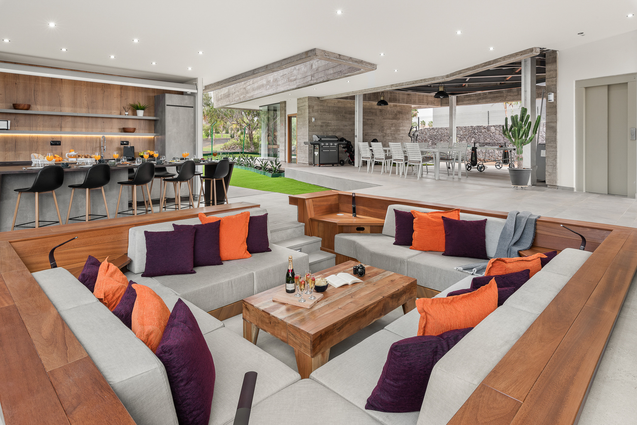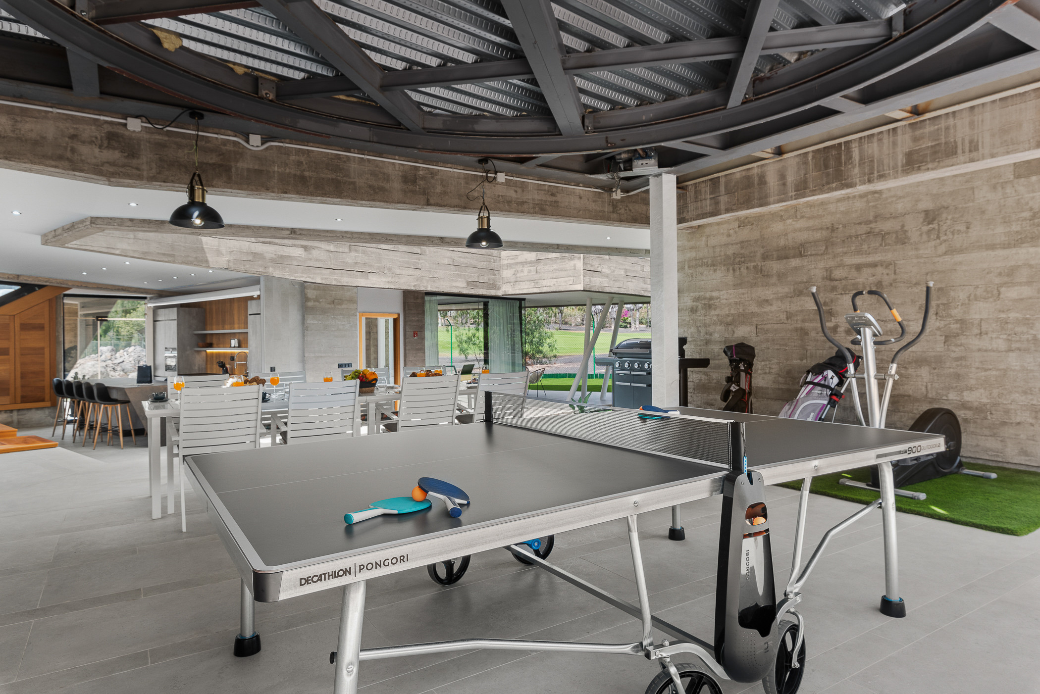 Dentro de la villa, encontrarás todas las comodidades necesarias para una estancia cómoda. Una smart TV está disponible en el salón moderno, donde podrás encontrar amplios sofás. La villa también cuenta con una mesa de ping pong y conexión wifi con fibra óptica disponible en toda la propiedad, permitiéndote estar conectado durante tu estancia.