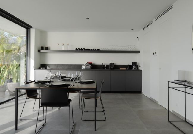 En la planta baja, dos amplias suites con baño privado se abren a una terraza con vistas panorámicas al océano. La piscina climatizada invita a la relajación, mientras que un exclusivo chill out en el interior de una cueva natural crea un ambiente mágico y sereno.