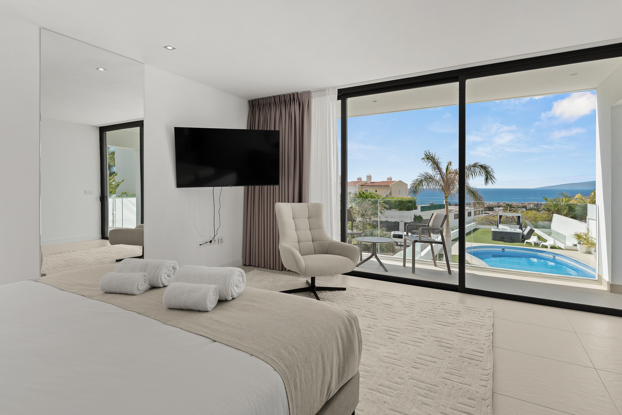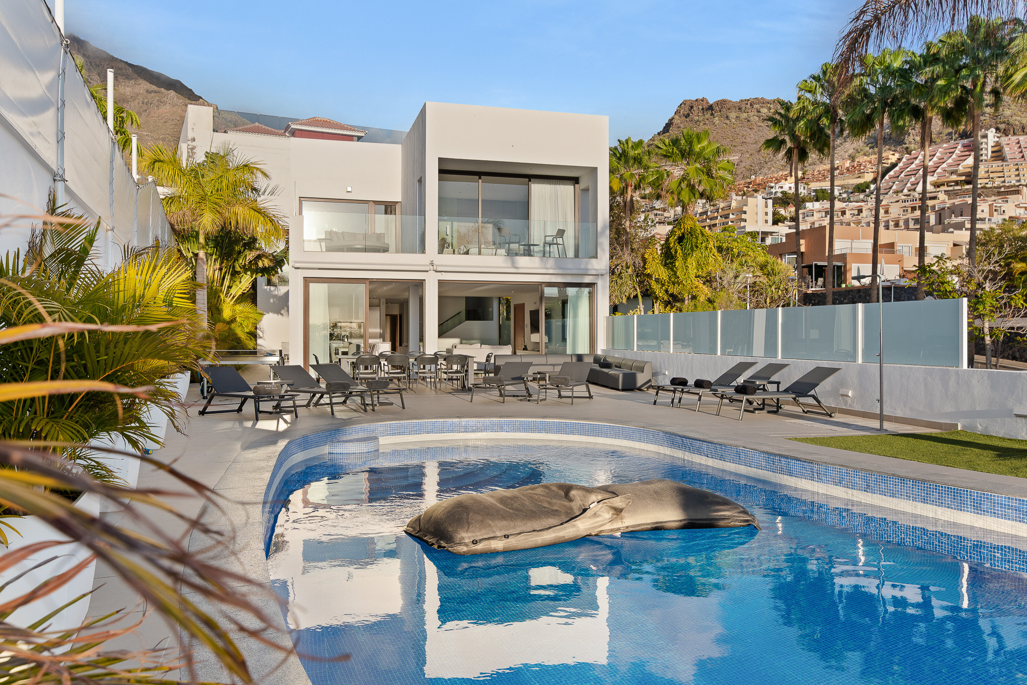 Esta espectacular villa en el sur de Tenerife le invita a disfrutar de una estancia exclusiva, rodeado de diseño, confort y unas vistas incomparables al océano Atlántico.
