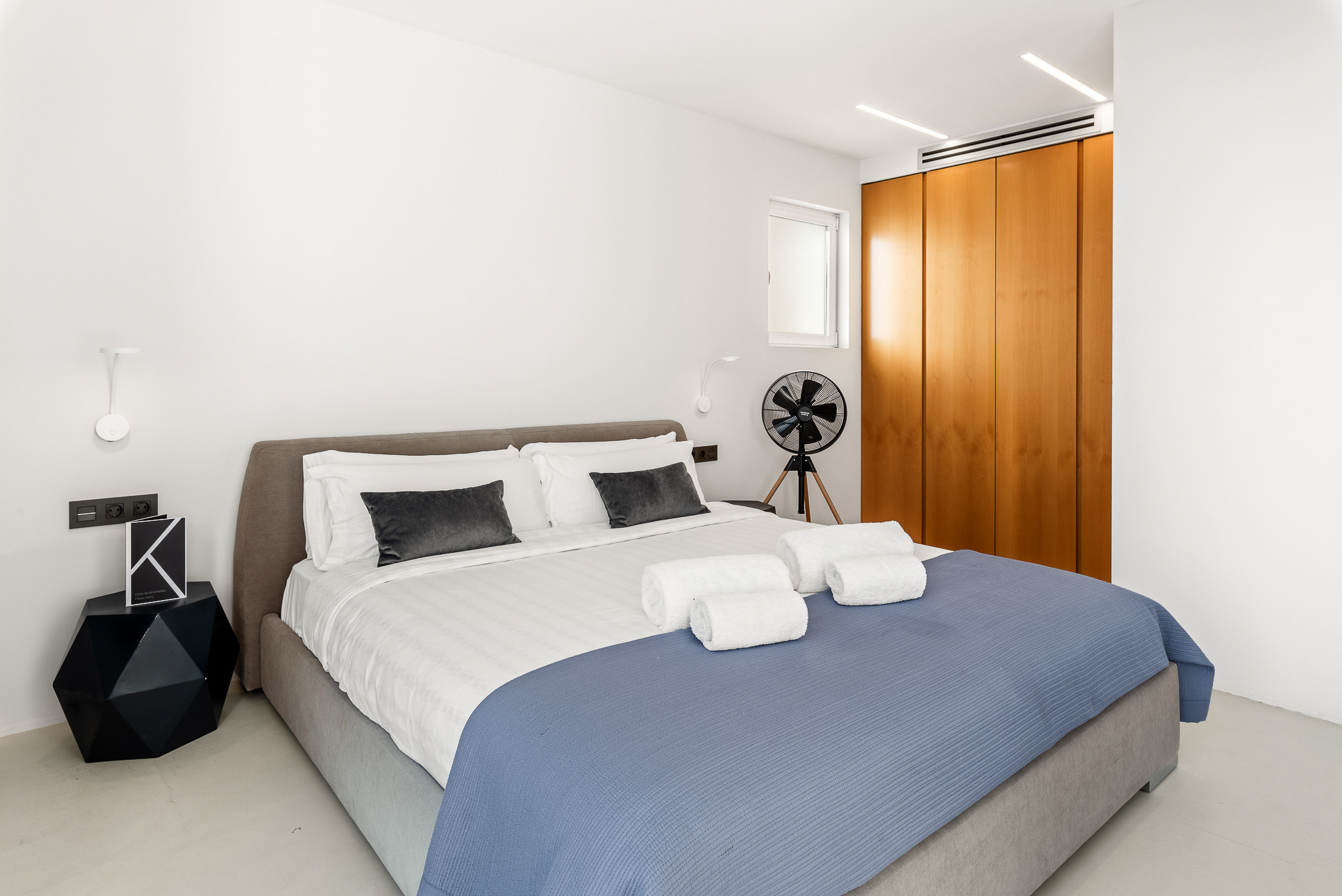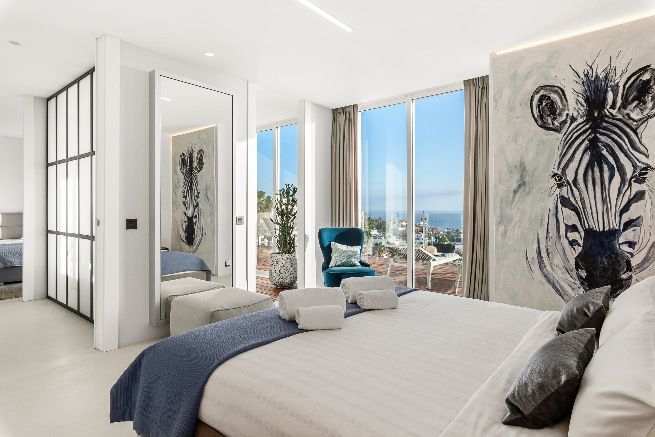 Su diseño arquitectónico moderno y cuidado da paso a interiores de elegancia serena. La villa cuenta con tres habitaciones tipo suite, cada una diseñada para proporcionar privacidad y descanso. La habitación principal se convierte en un auténtico santuario, con una bañera de diseño que invita a momentos de relax absoluto, acompañados por luz natural y vistas excepcionales.