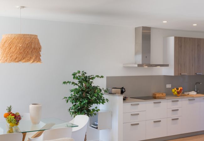 La cocina totalmente equipada con menaje completo ofrece todo lo necesario para los amantes de la gastronomía, la casa dispone de todos electrodomésticos habituales para que no te falte de nada. Desde la cocina se accede directamente a la terraza por lo que preparar un picnic mientras tu familia disfruta de un baño es muy sencillo y cómodo.