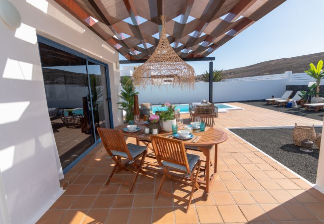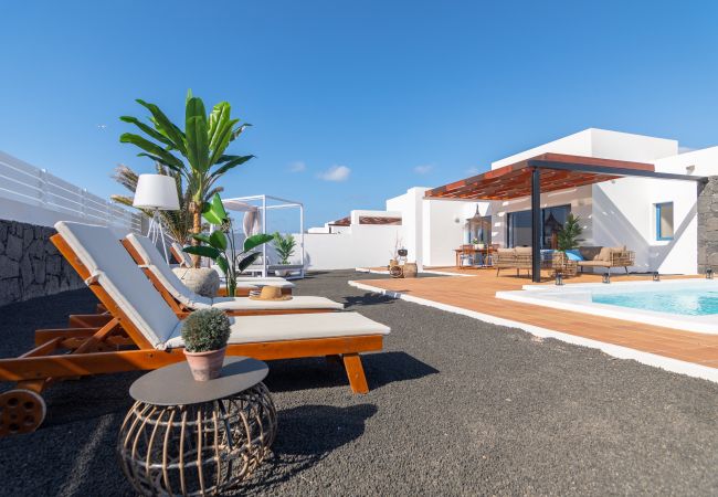 Reserva esta villa en Lanzarote y disfruta de unas vacaciones maravillosas en una villa con piscina privada climatizada, una terraza exterior amplia y bien cuidada y una ubicación inmejorable.
