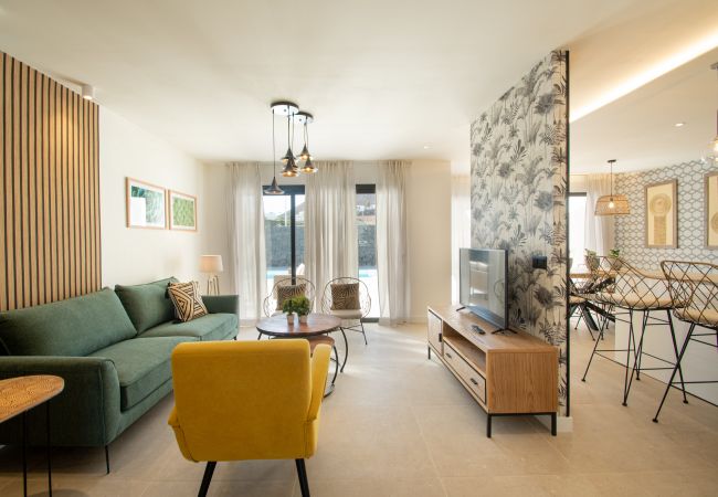 Preciosa villa de 3 habitaciones con zona exterior, piscina privada climatizada, acceso privado y con vistas a lugares muy mágicos como el Monumento Natural de Los Ajaches, Montaña Roja y al mar de Lanzarote .