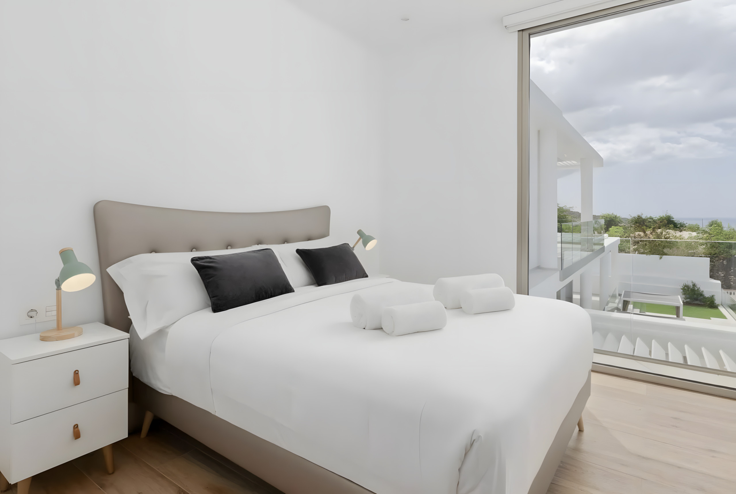 Sube y descubre un oasis privado: tres habitaciones llenas de calma y elegancia, dos de ellas en suite. El dormitorio principal te regala un vestidor de película y una terraza con jacuzzi, ideal para ver cómo el sol se esconde tras el mar, copa en mano.
