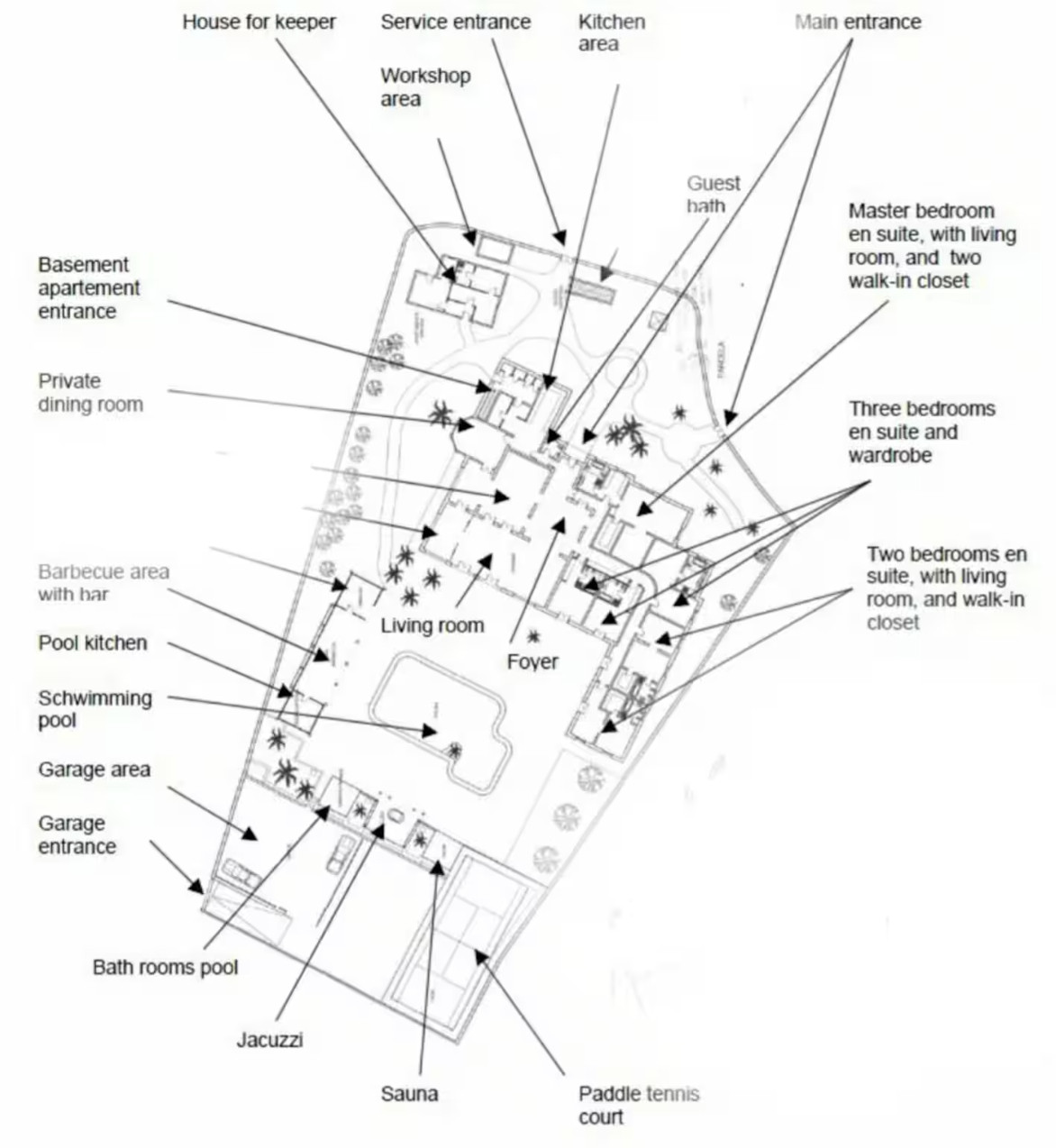 La villa tiene capacidad para 14 huéspedes y cuenta con: