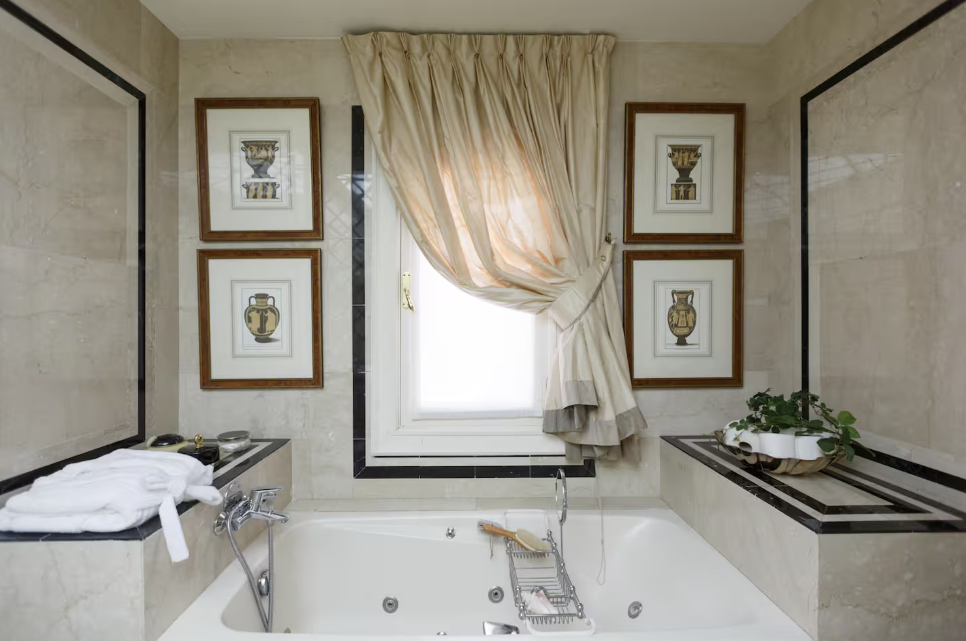 4 suites elegantes con cama doble y baño privado con bañera y ducha,