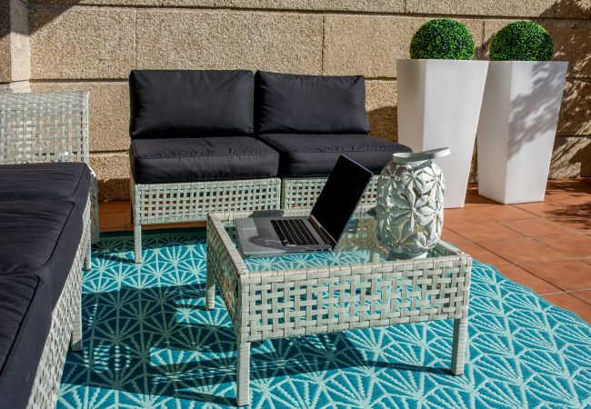 We invite you to stay in this comfortable and sophisticated apartment on the island of La Toja, the heart of the Rias Baixas. Just 150 metres from the sea and located in a select residential area with a communal pool and landscaped areas.