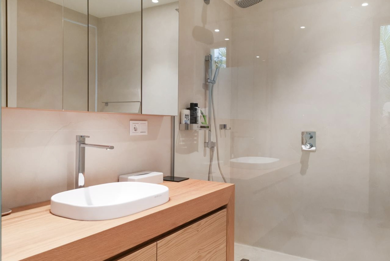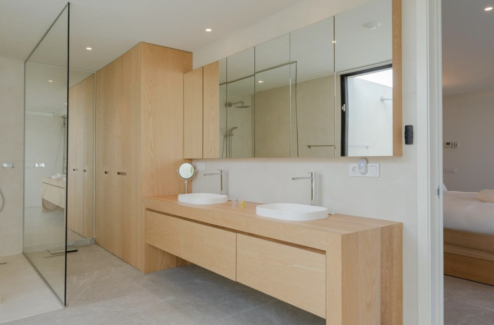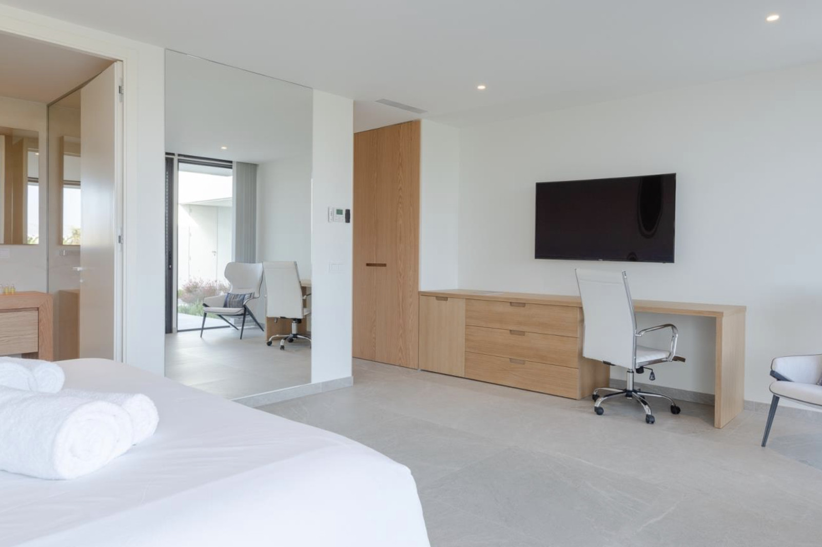 On the ground floor are the four en-suite bedrooms, each with direct access to its own private terrace. Designed for rest and disconnection, these spaces offer a carefully selected range of textiles, spacious walk-in wardrobes and bathrooms where every detail has been considered to elevate the comfort experience.