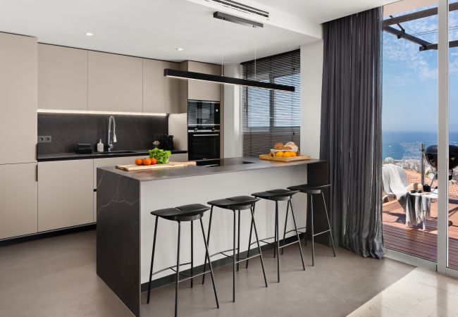 The upper floor houses a spacious lounge with an integrated kitchen, designed to share great moments. From here, you can access a spectacular terrace with open views, perfect for enjoying outdoor dinners and memorable sunsets.