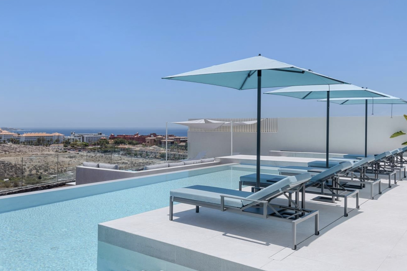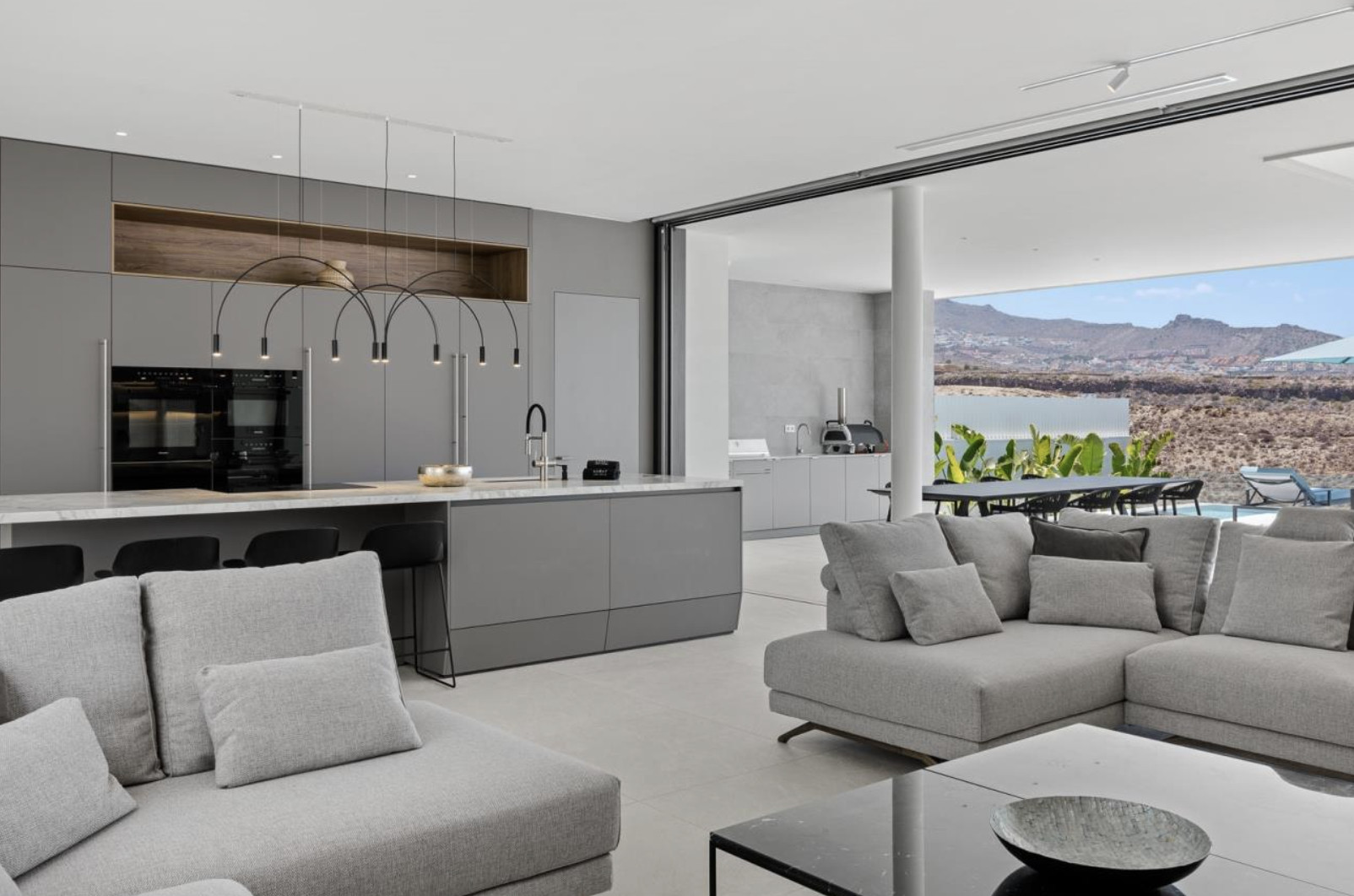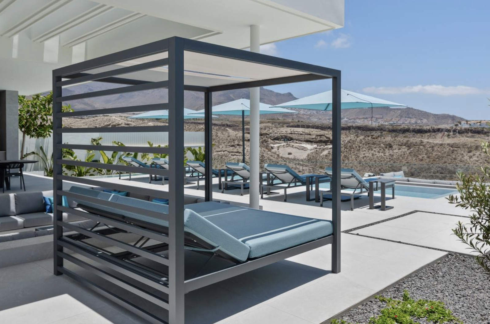 An automated glass door connects the interior with a dream terrace. There, the heated and covered infinity pool merges with the Atlantic horizon, accompanied by a jacuzzi with views of the majestic Roque del Conde. For cooler days, the heated chill-out area offers the ideal comfort to enjoy the outdoors at any time of the year.