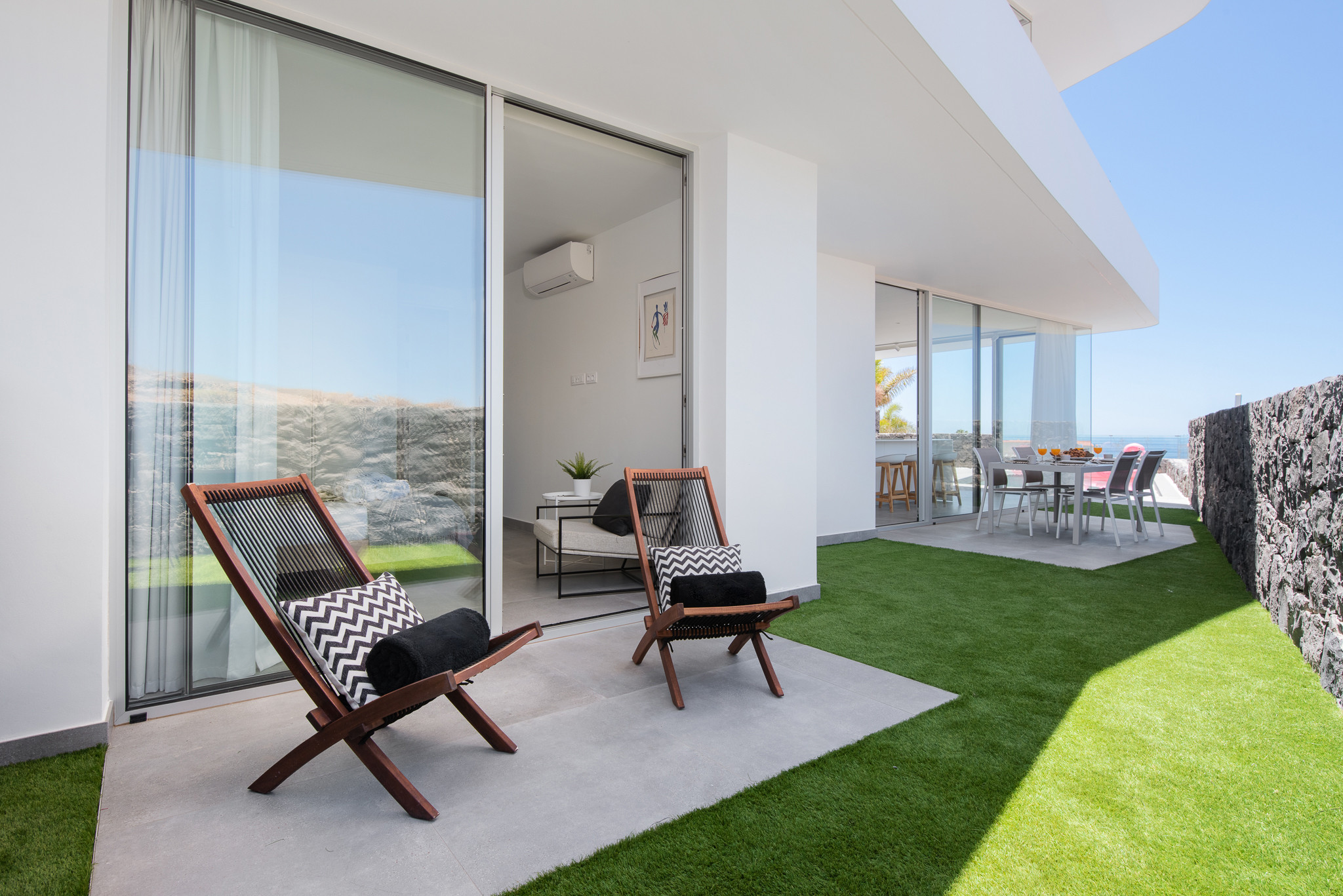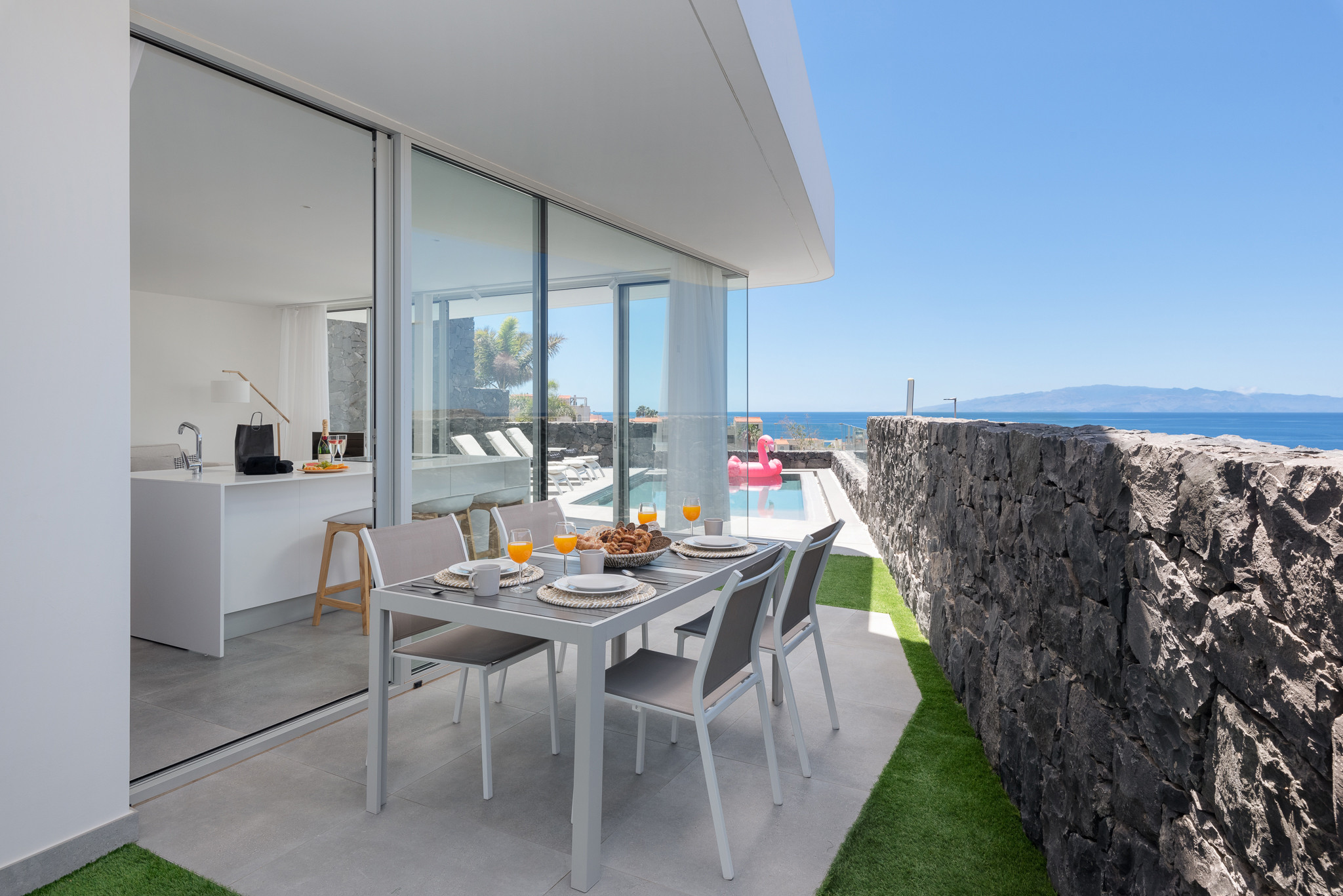 The terrace is glazed and the villa features an open-plan design with natural light, making it a comfortable, pleasant and bright place to stay.