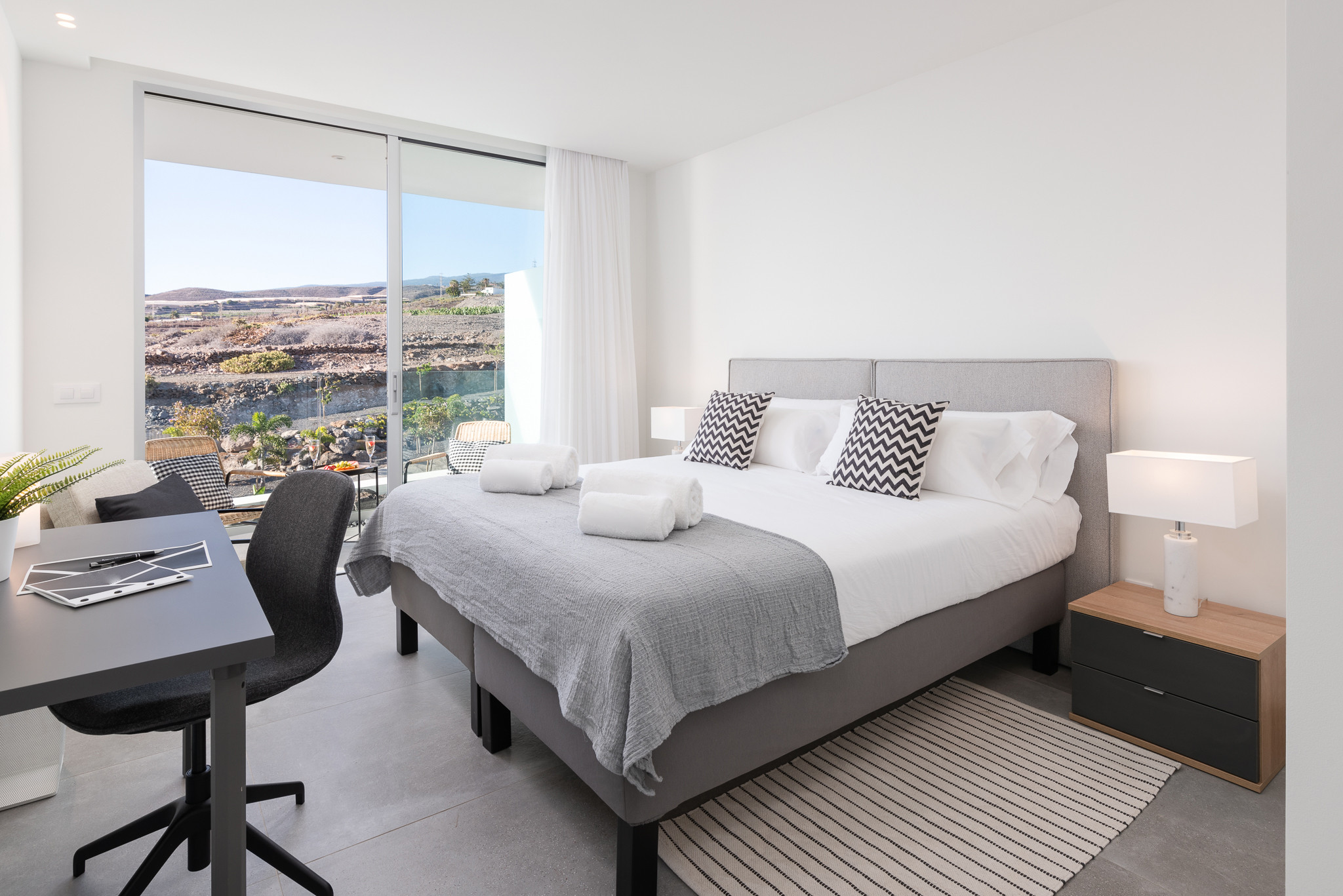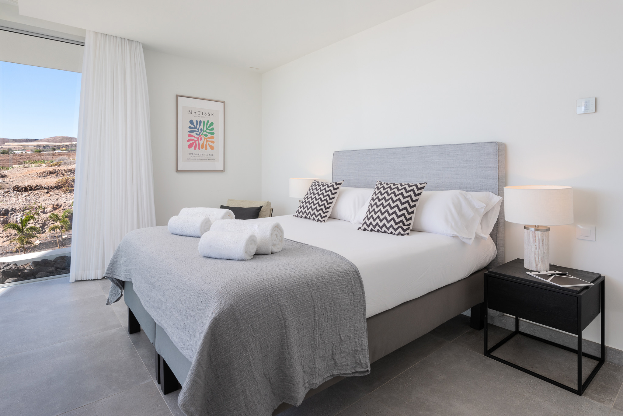 The villa has 4 modern bedrooms that include two double beds and two single beds. In addition, there is an extra bed available to accommodate an additional person.