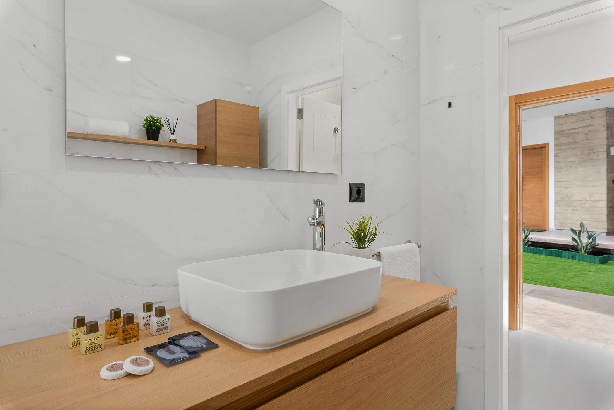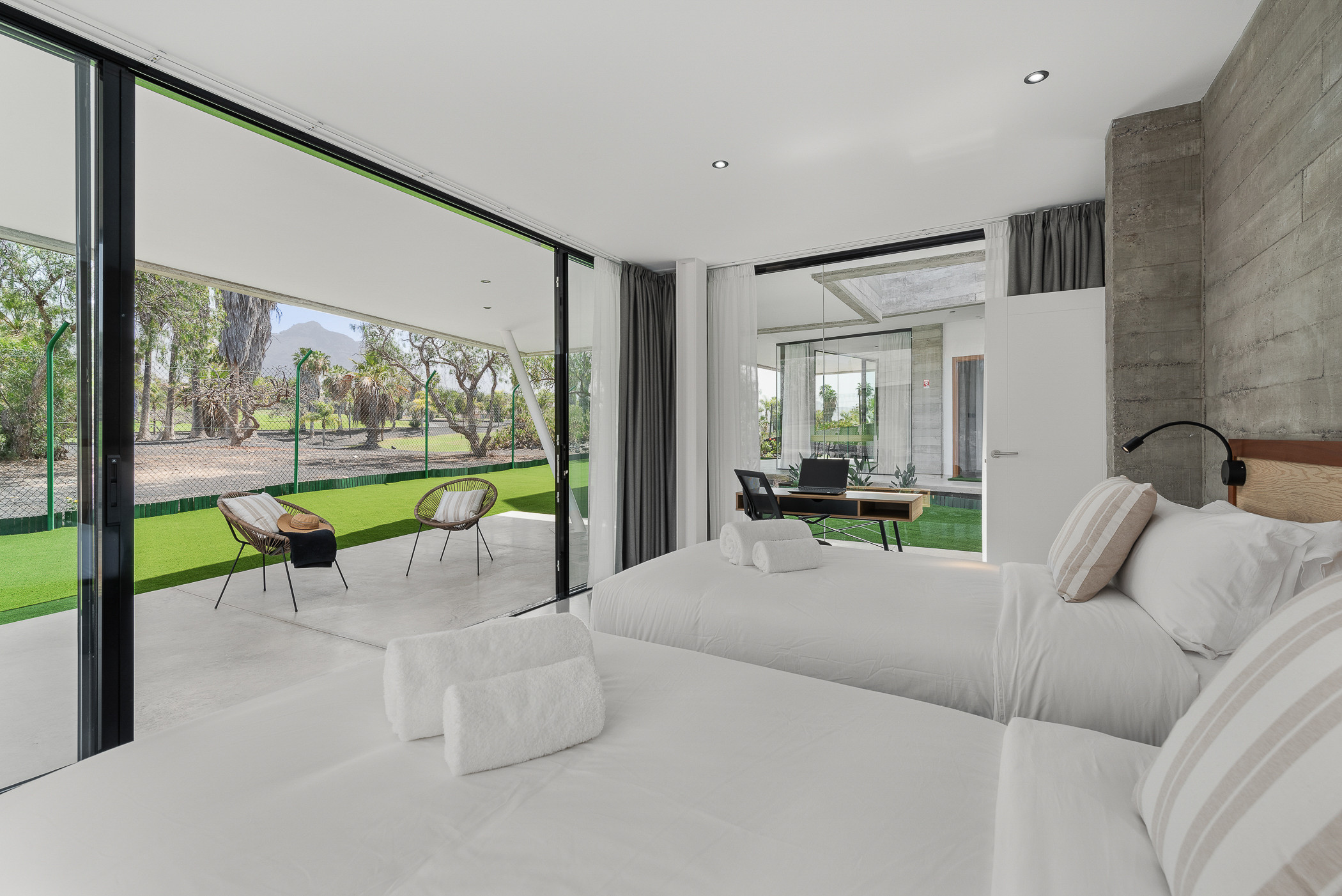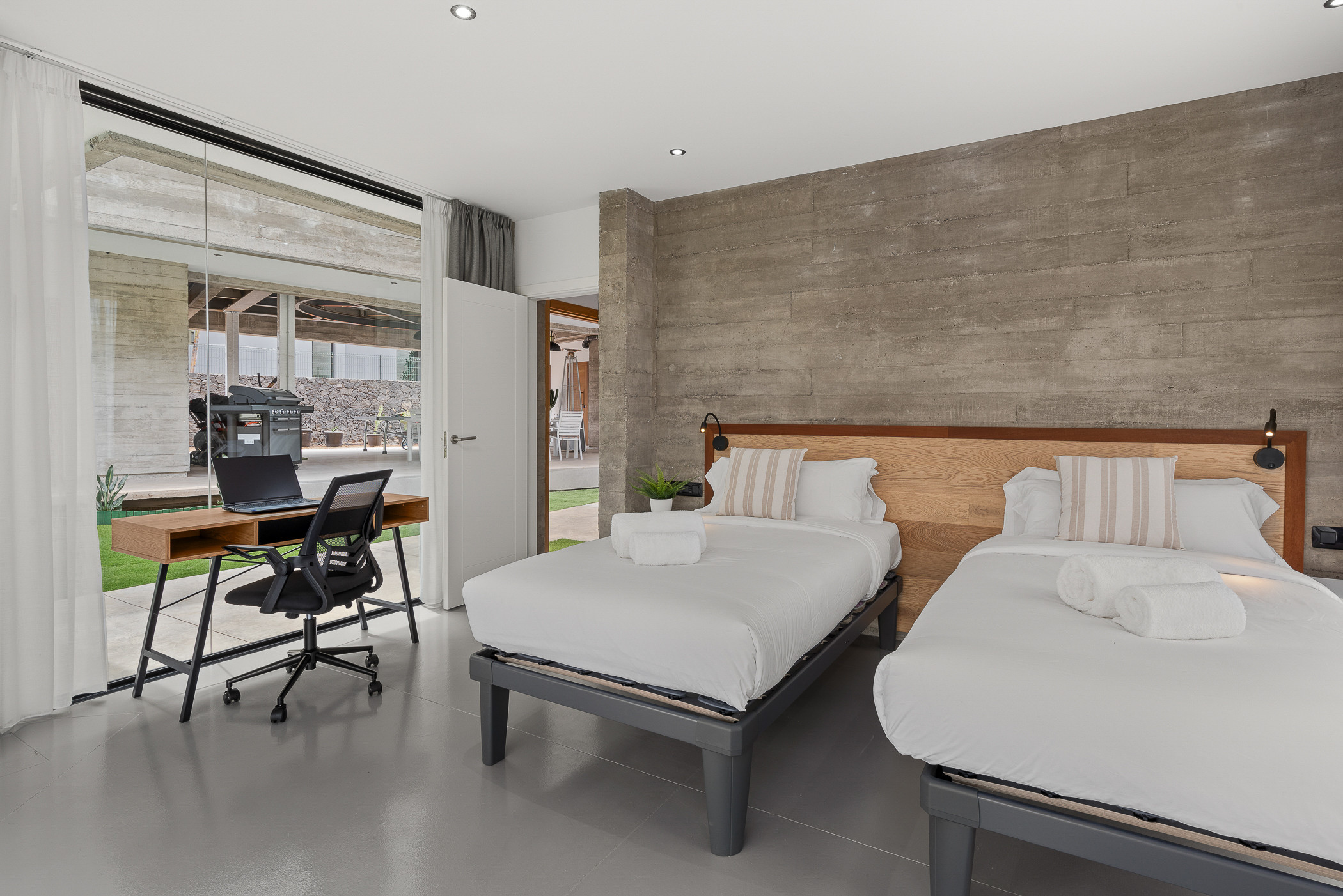 Inside the villa, you will find all the necessary amenities for a comfortable stay. A smart TV is available in the modern living room, where you will find spacious sofas. The villa also features a ping pong table and fibre optic wifi is available throughout the property, allowing you to stay connected during your stay.