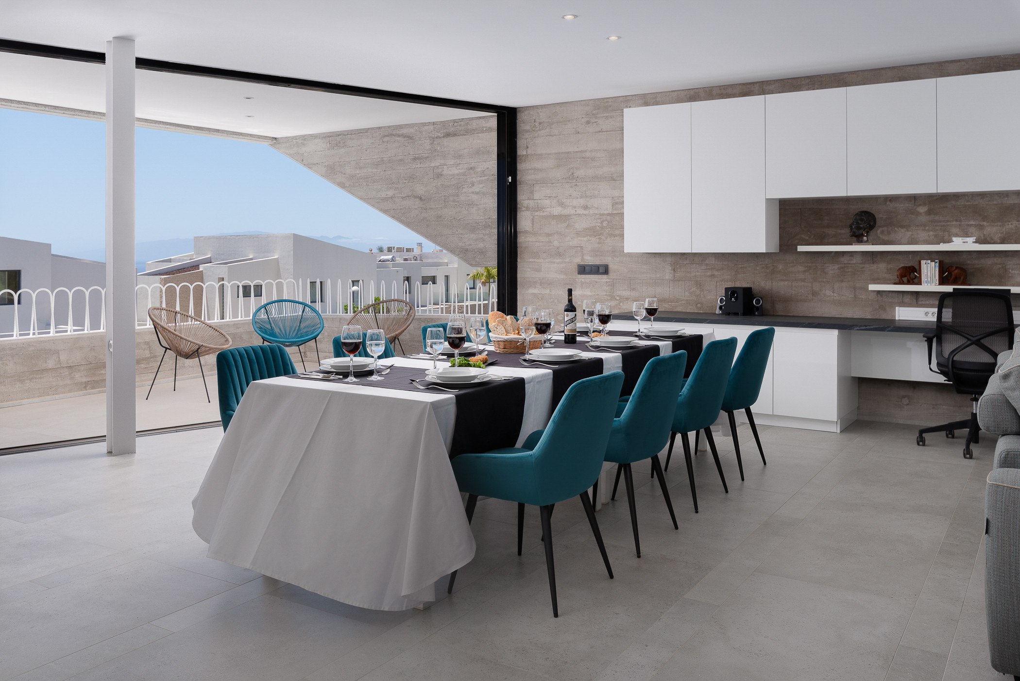 The open concept kitchen is spacious and bright, and is fully equipped with everything you need to prepare your favourite meals. An indoor and outdoor dining table allows you to enjoy alfresco meals with breathtaking views.
