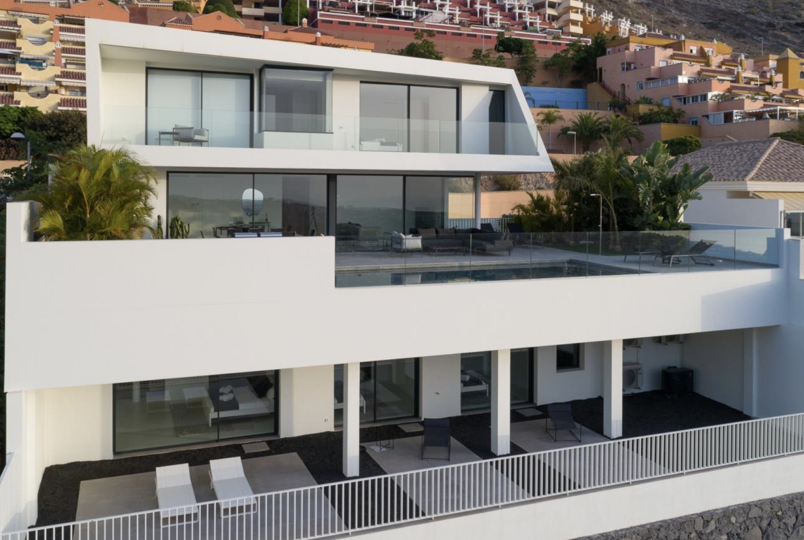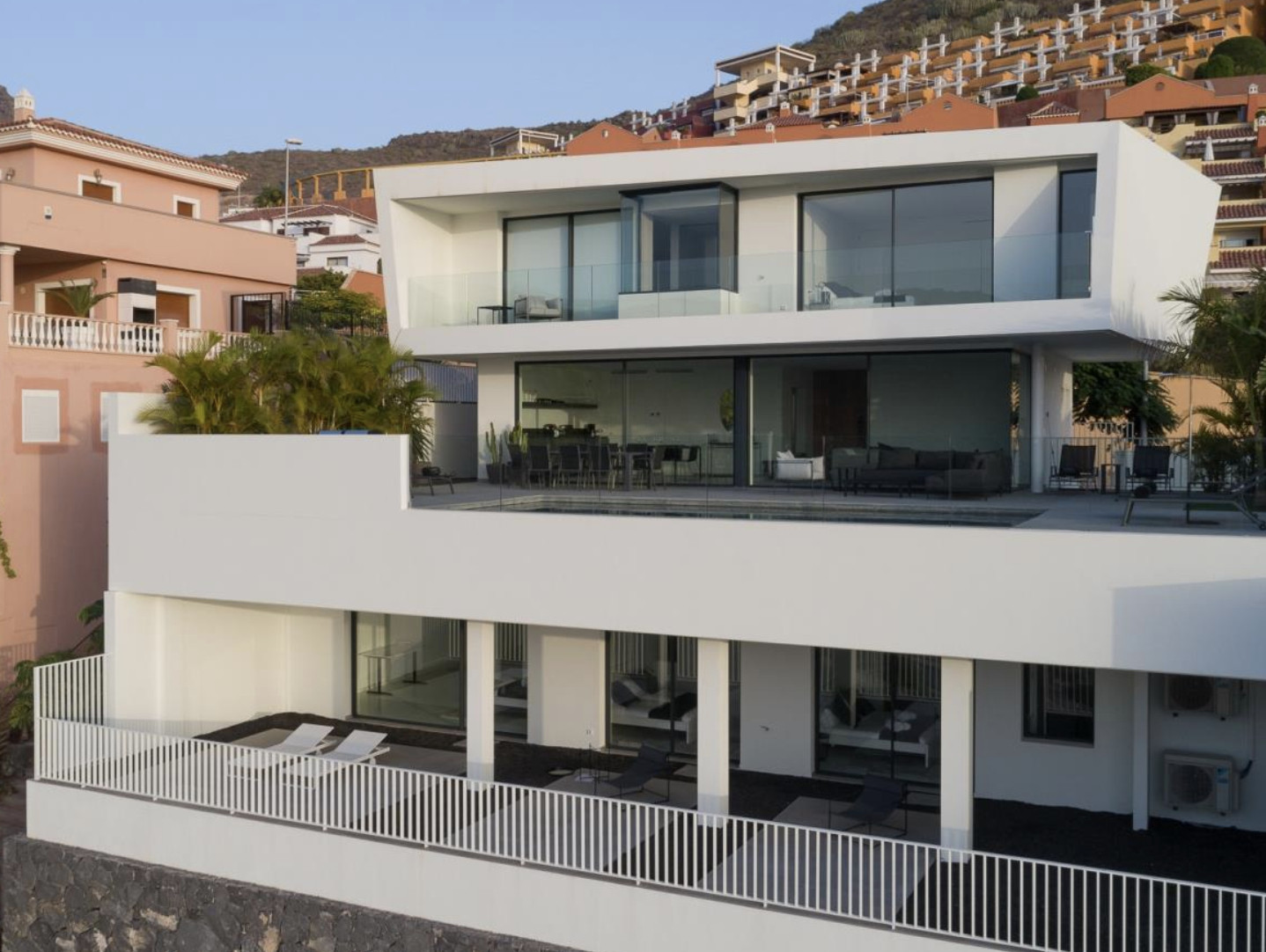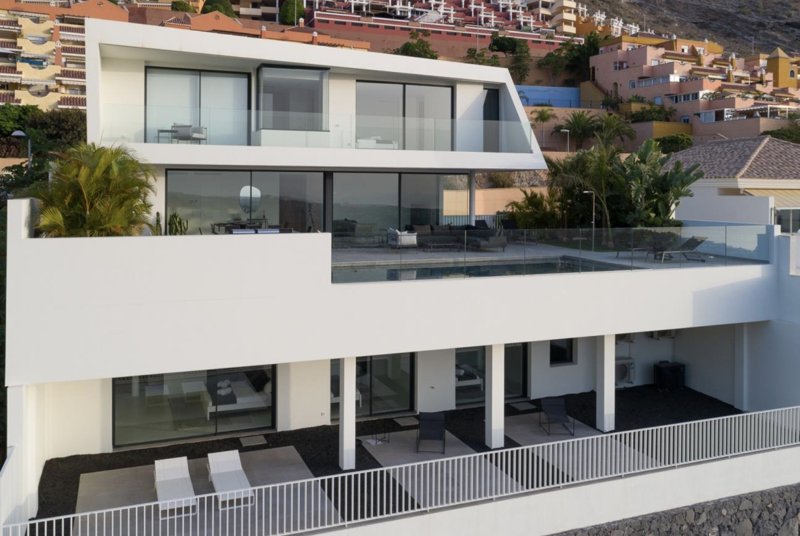 Rising above the majestic coast of Adeje, Villa Eraluna is a masterpiece of contemporary elegance and Atlantic calm. Distributed across three levels perfectly integrated into the landscape, this residence redefines residential luxury in an environment where the sea and light become protagonists.