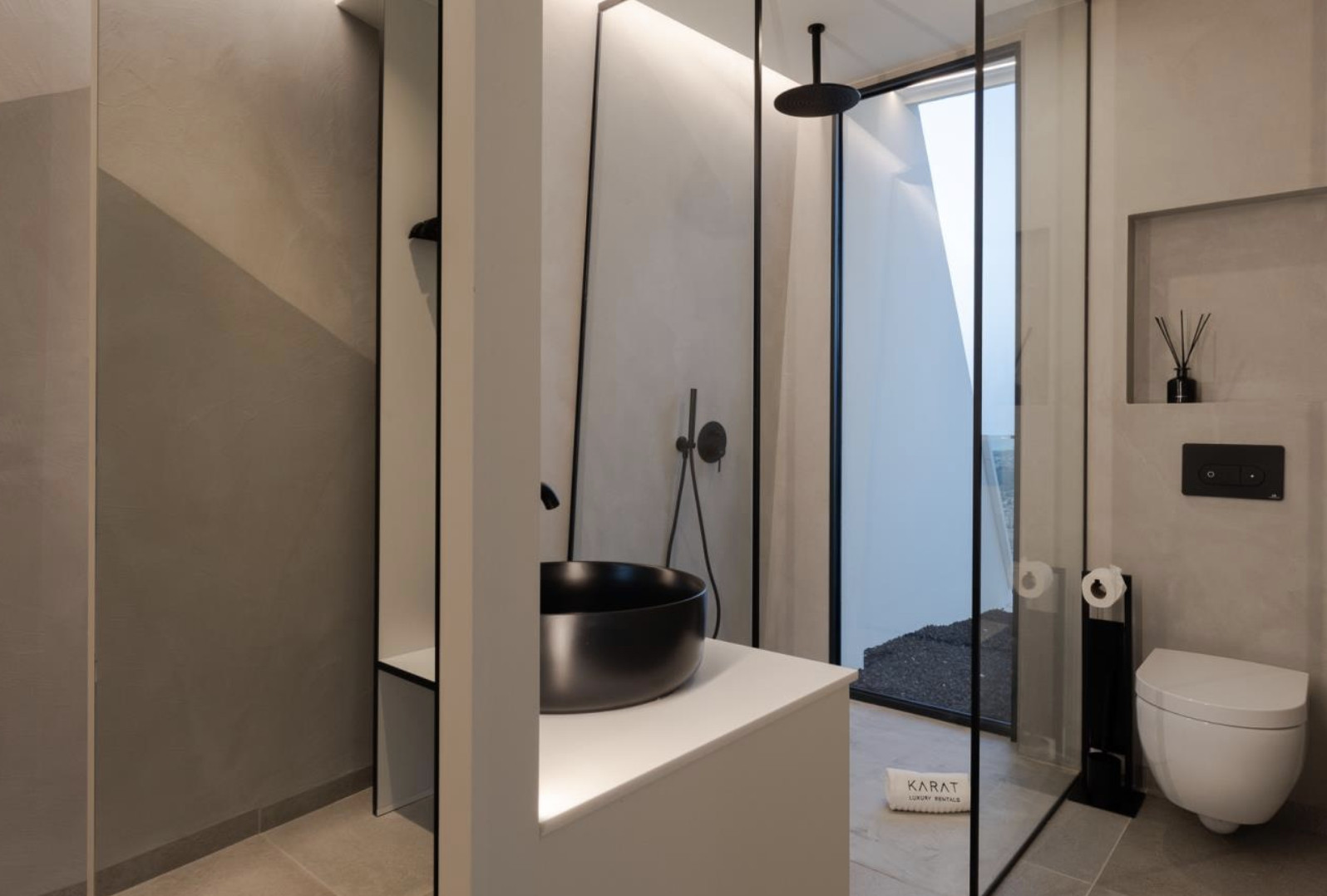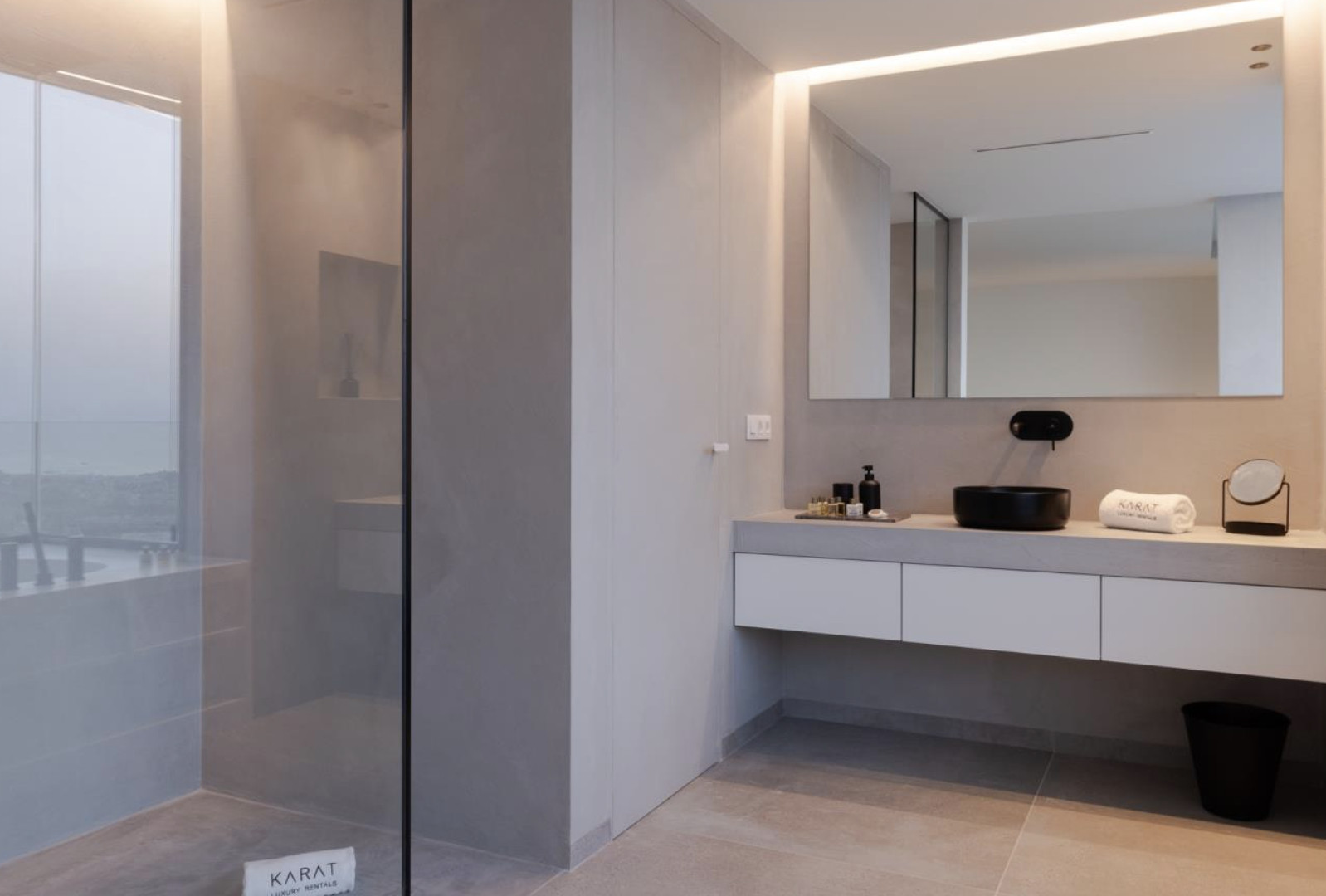 On the lower floor, three double suites offer an intimate refuge with direct access to a spacious private terrace, from which a seascape unfolds that envelops the senses. Each room has an en-suite bathroom, carefully curated decor, and a serene atmosphere. This floor also houses a fully equipped laundry area, designed to provide discreet and efficient comfort.