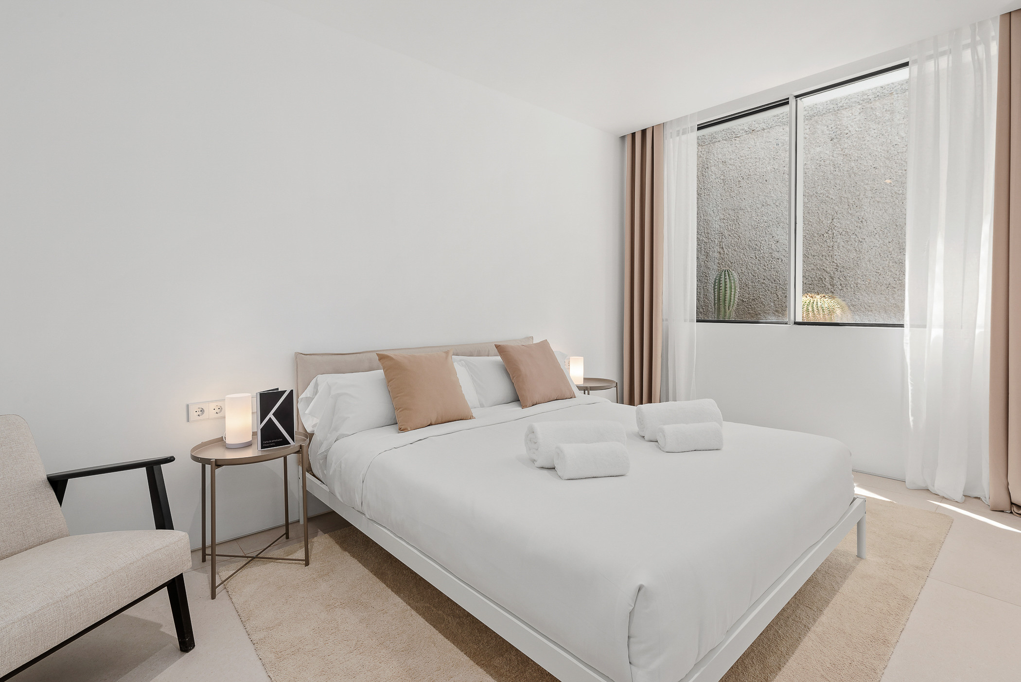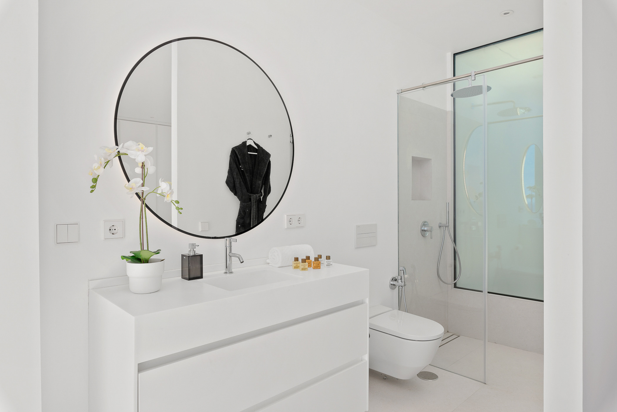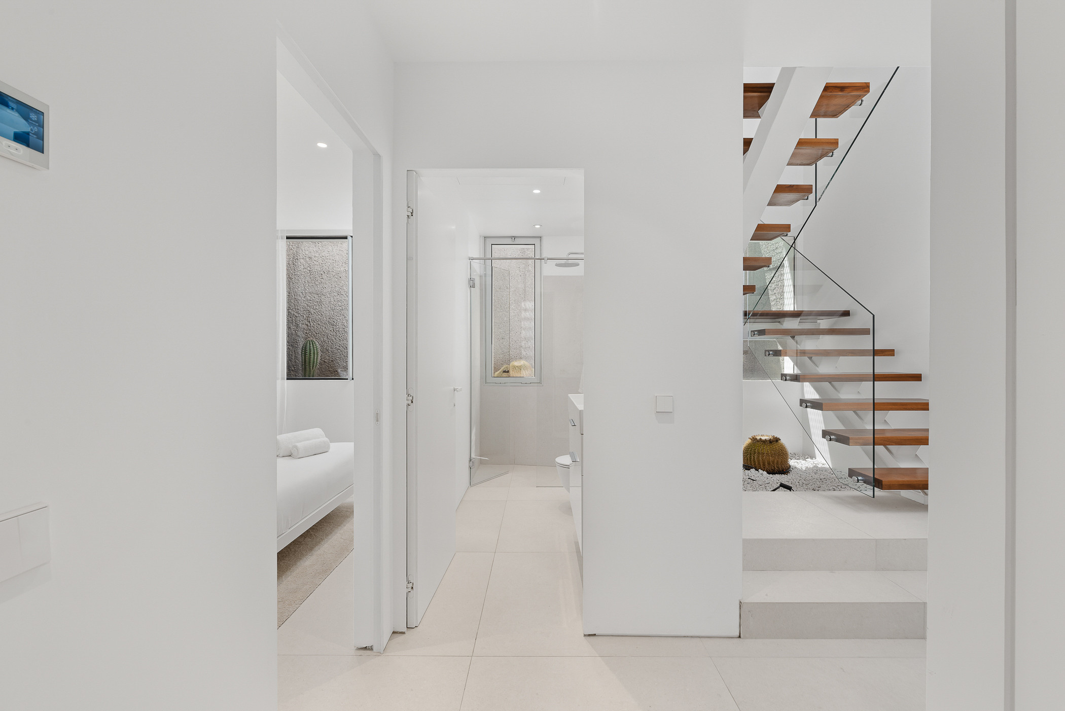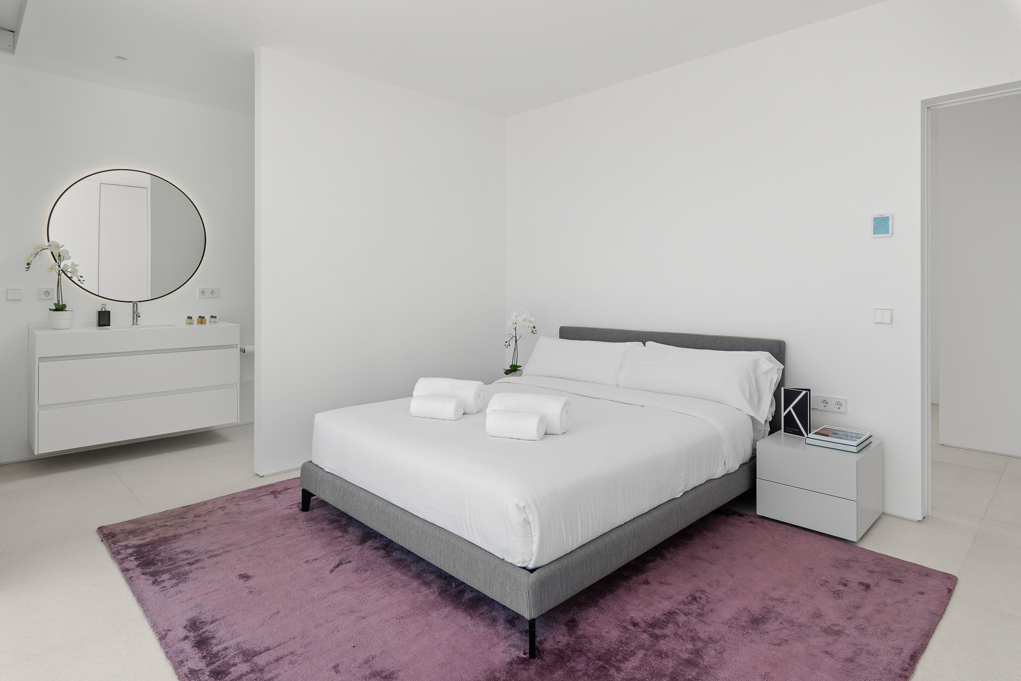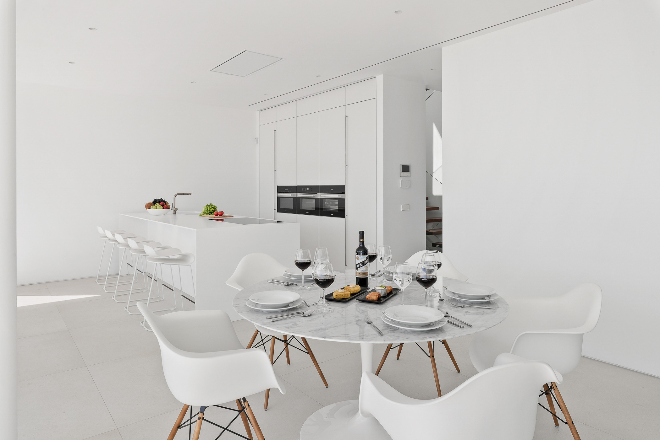 In the exterior, the protagonist is an infinite private pool that seems to merge with the sea. The chill-out area, the outdoor dining room and the gardened spaces offer perfect corners for rest, conversation or simply contemplating the sunset.