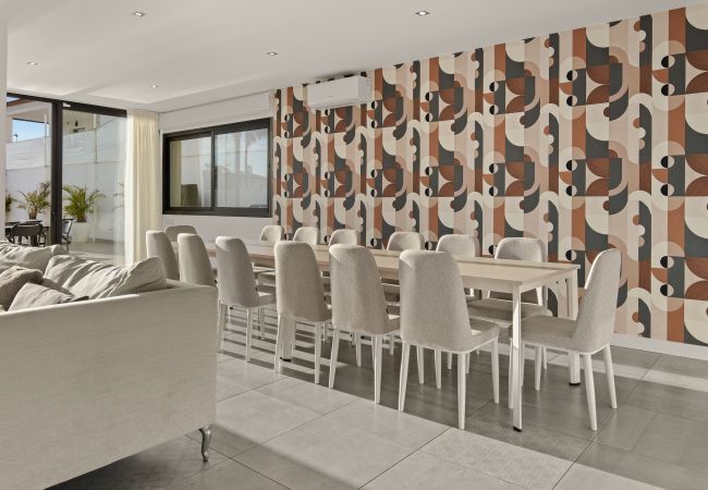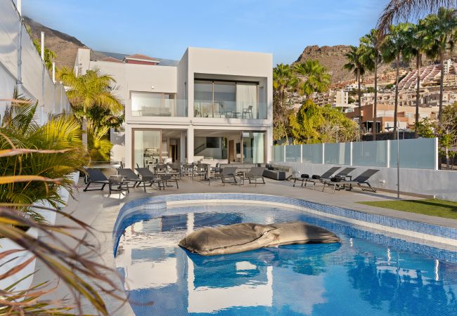 The villa in Costa Adeje has 8 bedrooms and has capacity for 16 people.