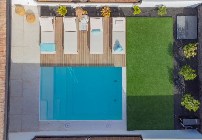 Enjoy with family, couple or friends this villa with private heated pool located in a perfect area to immerse yourself in Lanzarote and its views of the sea, Fuerteventura and the island of Lobos.