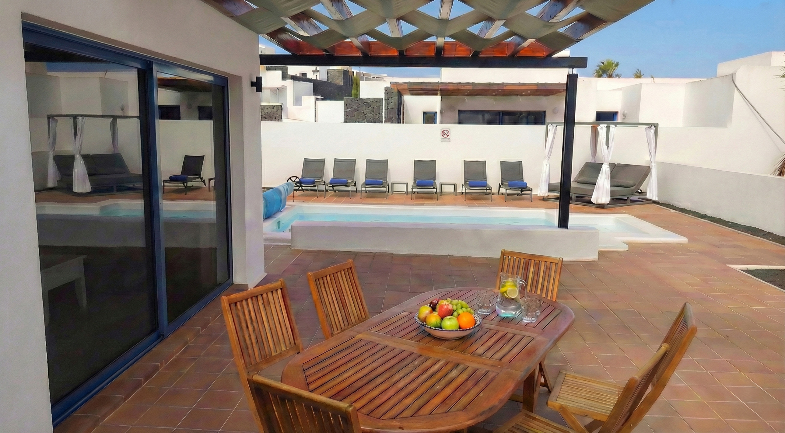 This villa in Playa Blanca has a large terrace equipped with outdoor furniture, private heated swimming pool and private parking is the perfect place for a quality holiday.