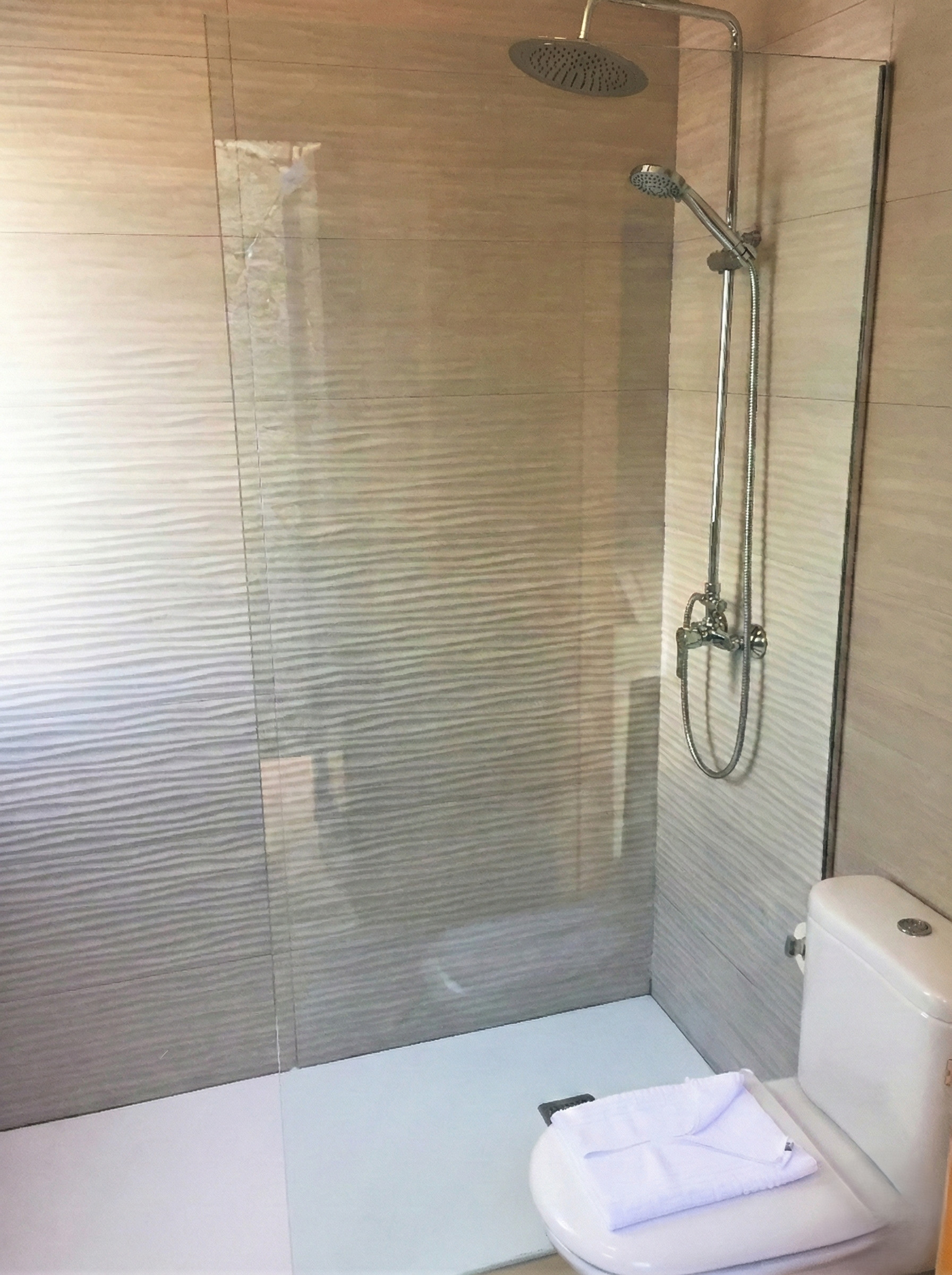 The villa consists of 3 comfortable bedrooms. One double bedroom with 1.50m x 1.90m bed and bathroom en suite, and two bedrooms with 2 single beds each. There is a shower room.