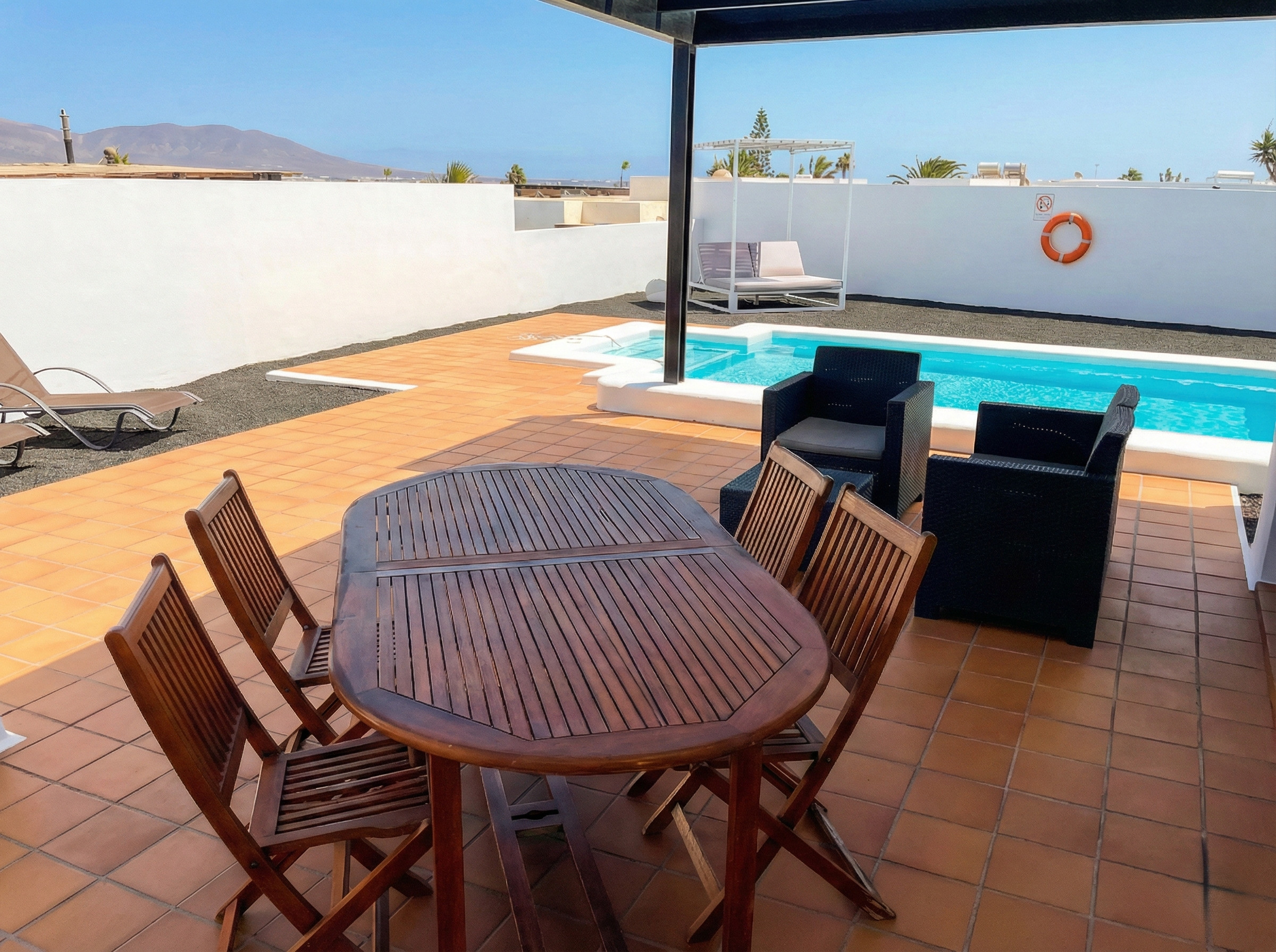 Book this b>villa in Lanzarote and enjoy a wonderful holiday in a villa with a private heated pool, a spacious and well-kept outdoor terrace and an unbeatable location.