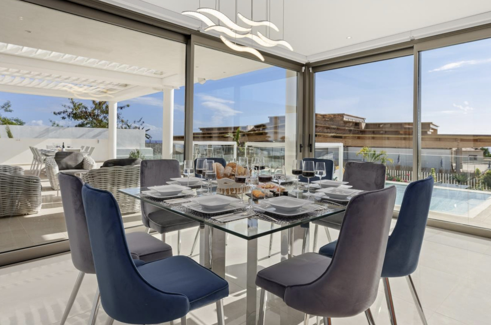 From the first step, Villa Elan envelops you with its modern and luminous style. The spacious living-dining room, decorated with exquisite taste, becomes the perfect setting to relax in style or toast in good company. The kitchen, with an elegant central island, invites you to create – or enjoy – memorable dishes with ocean views.