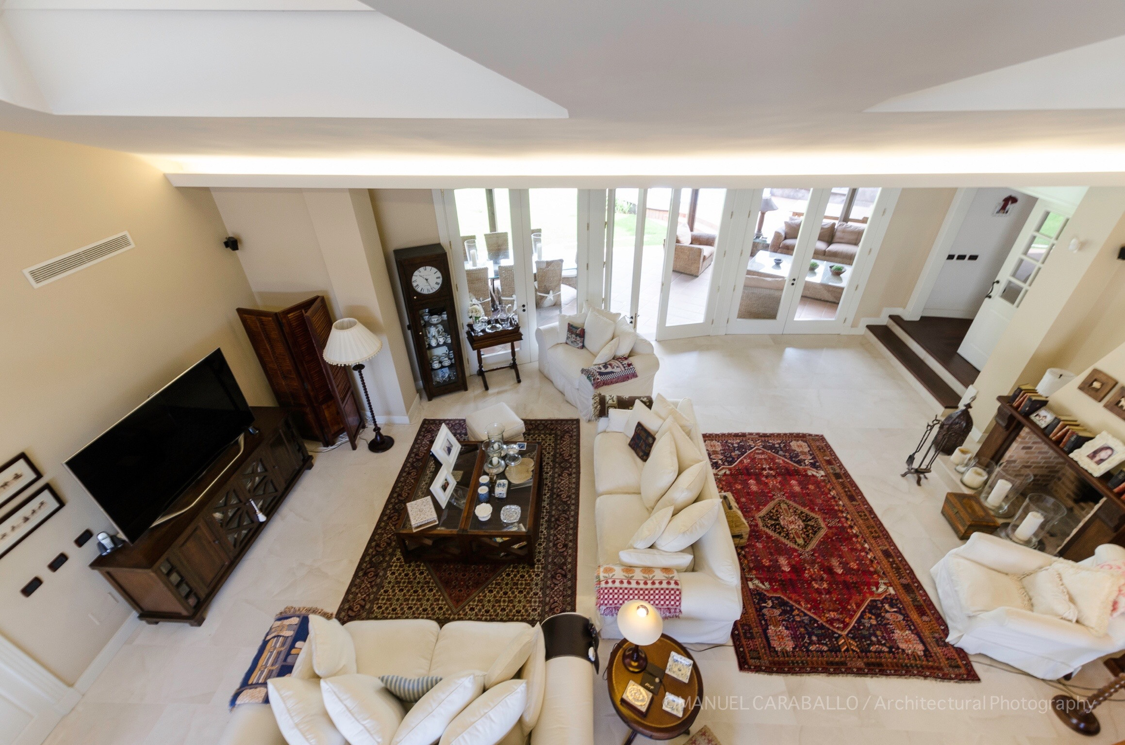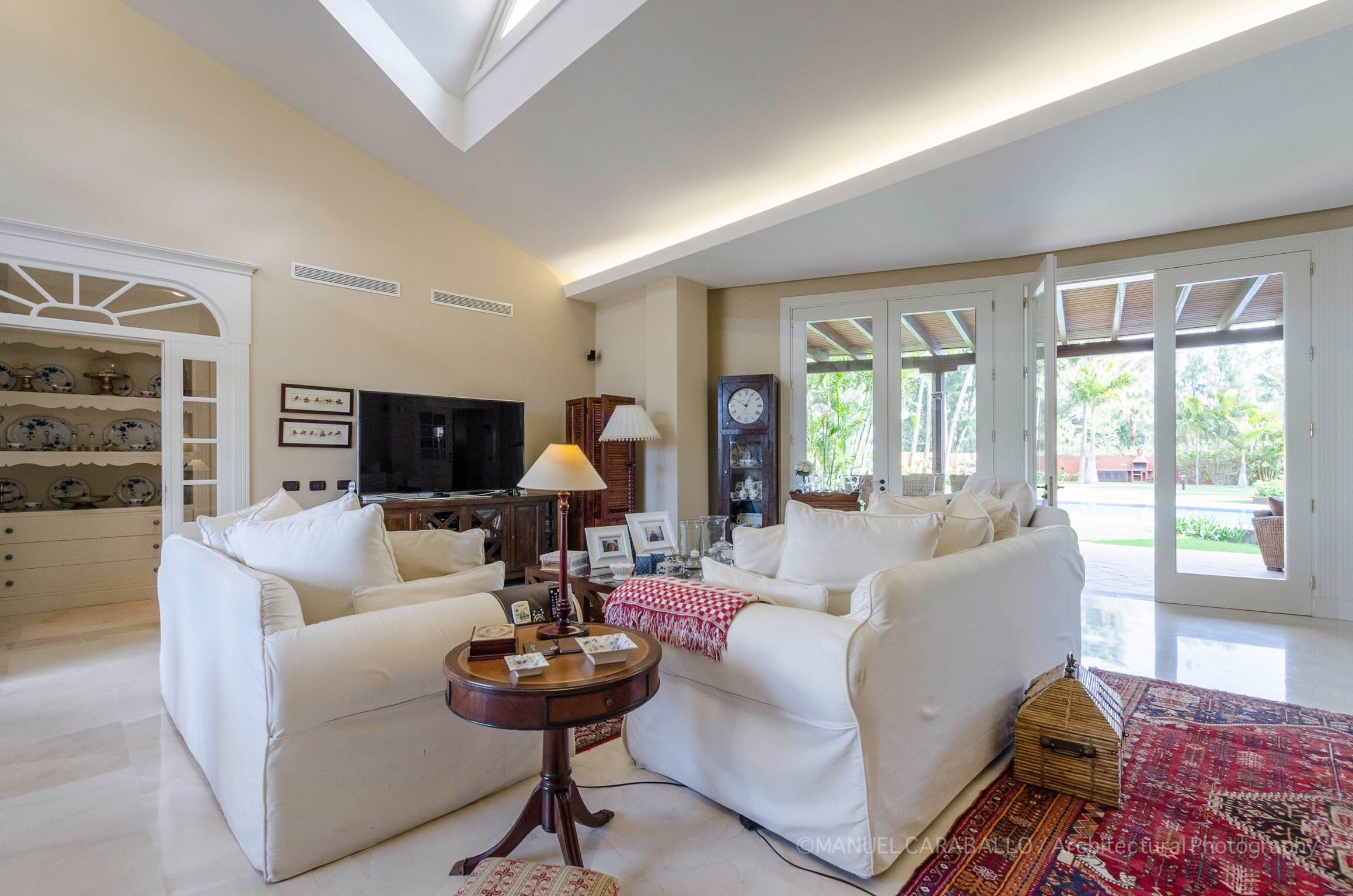 Living-dining room with direct access to the terrace, garden and swimming pool.