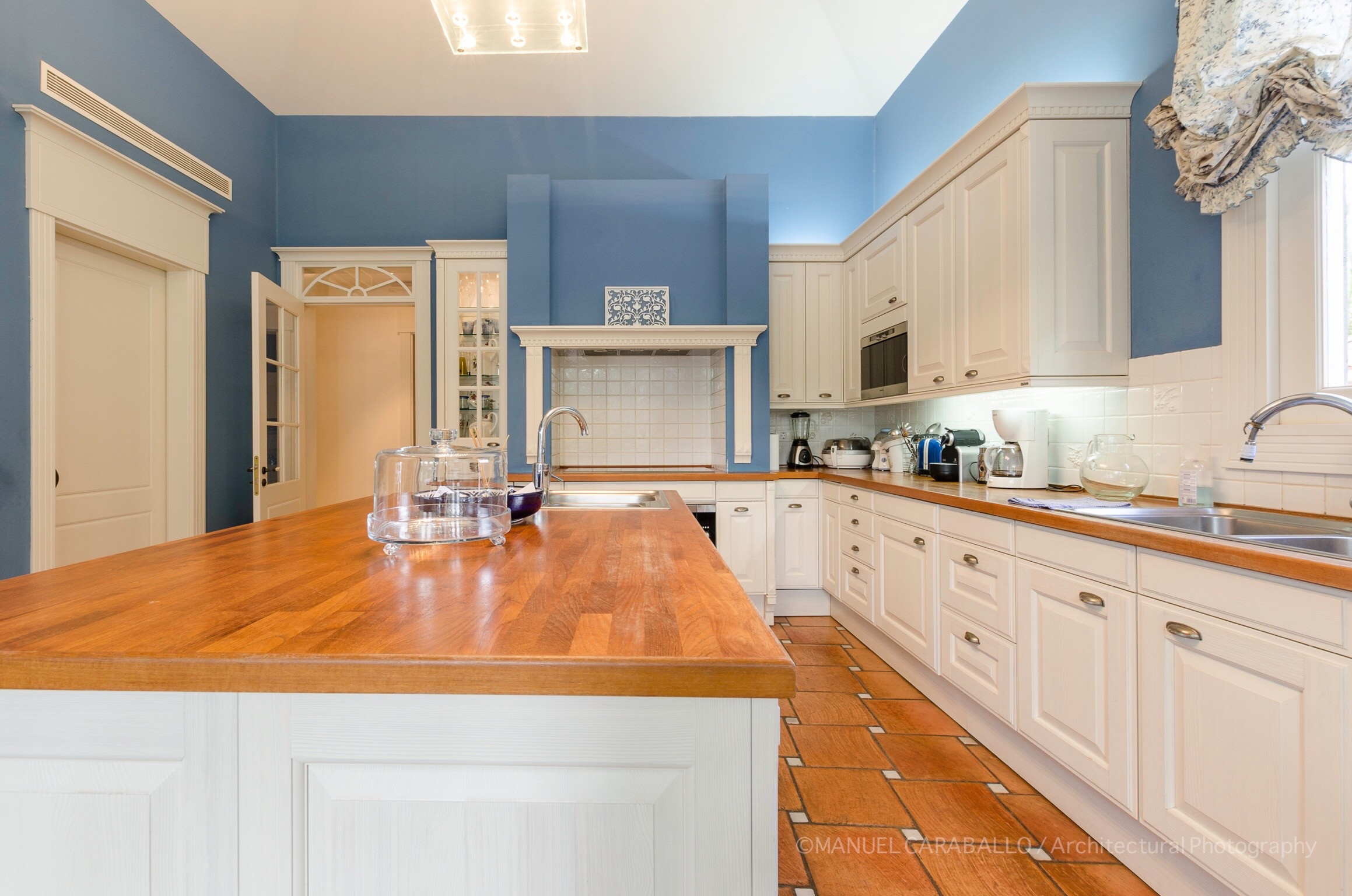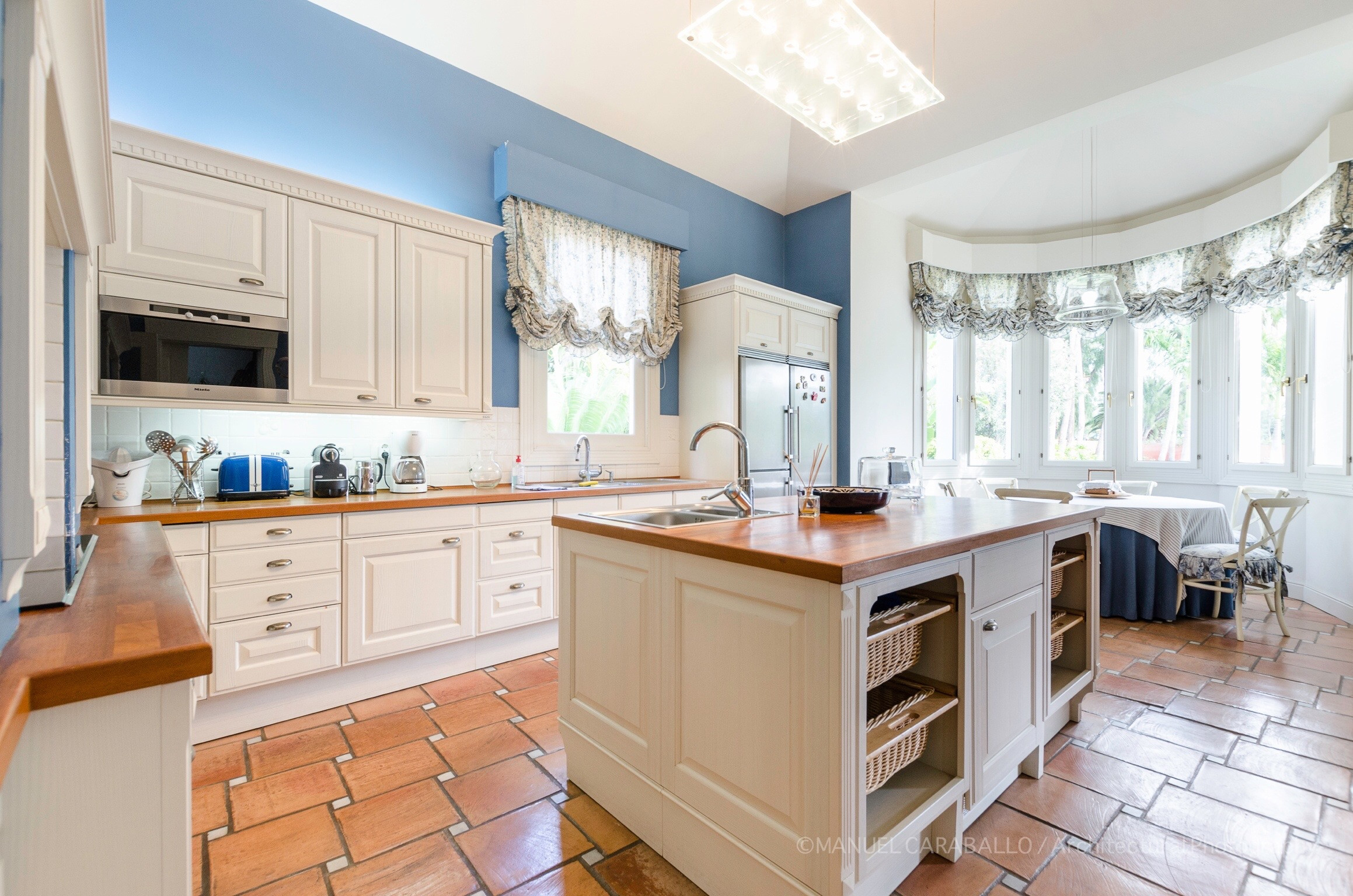 Independent design kitchen with Siematic furniture, Miele appliances, central island and dining room with views of the swimming pool.